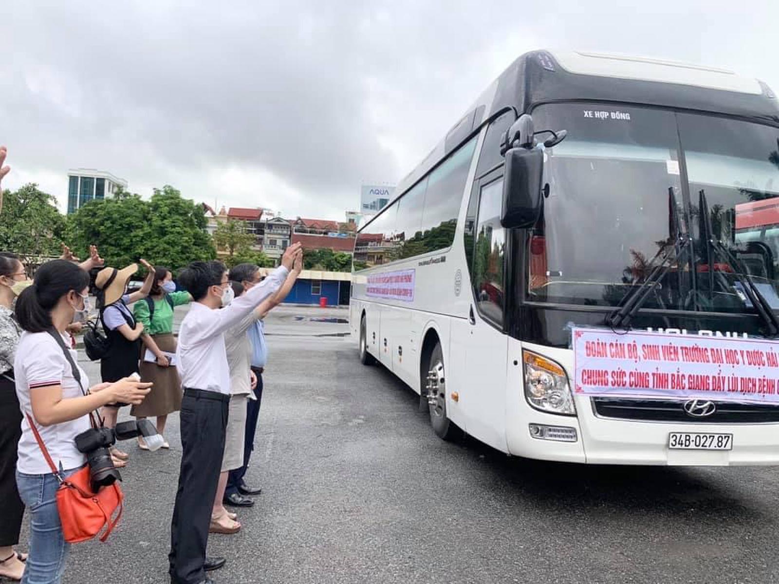 Ngay sau đó, sáng ngày 27/5, Trường Đại học Y dược Hải Phòng tổ chức lễ xuất quân đoàn cán bộ, sinh viên tình nguyện tham gia chống dịch tại tỉnh Bắc Giang.