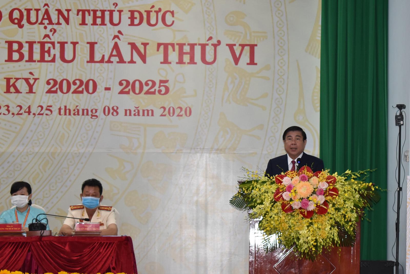 Phát biểu chỉ đạo Đại hội, Chủ tịch UBND TP HCM Nguyễn Thành Phong đánh giá cao và biểu dương những thành quả mà Đảng bộ, chính quyền và nhân dân quận Thủ Đức đạt được trong nhiệm kỳ qua.