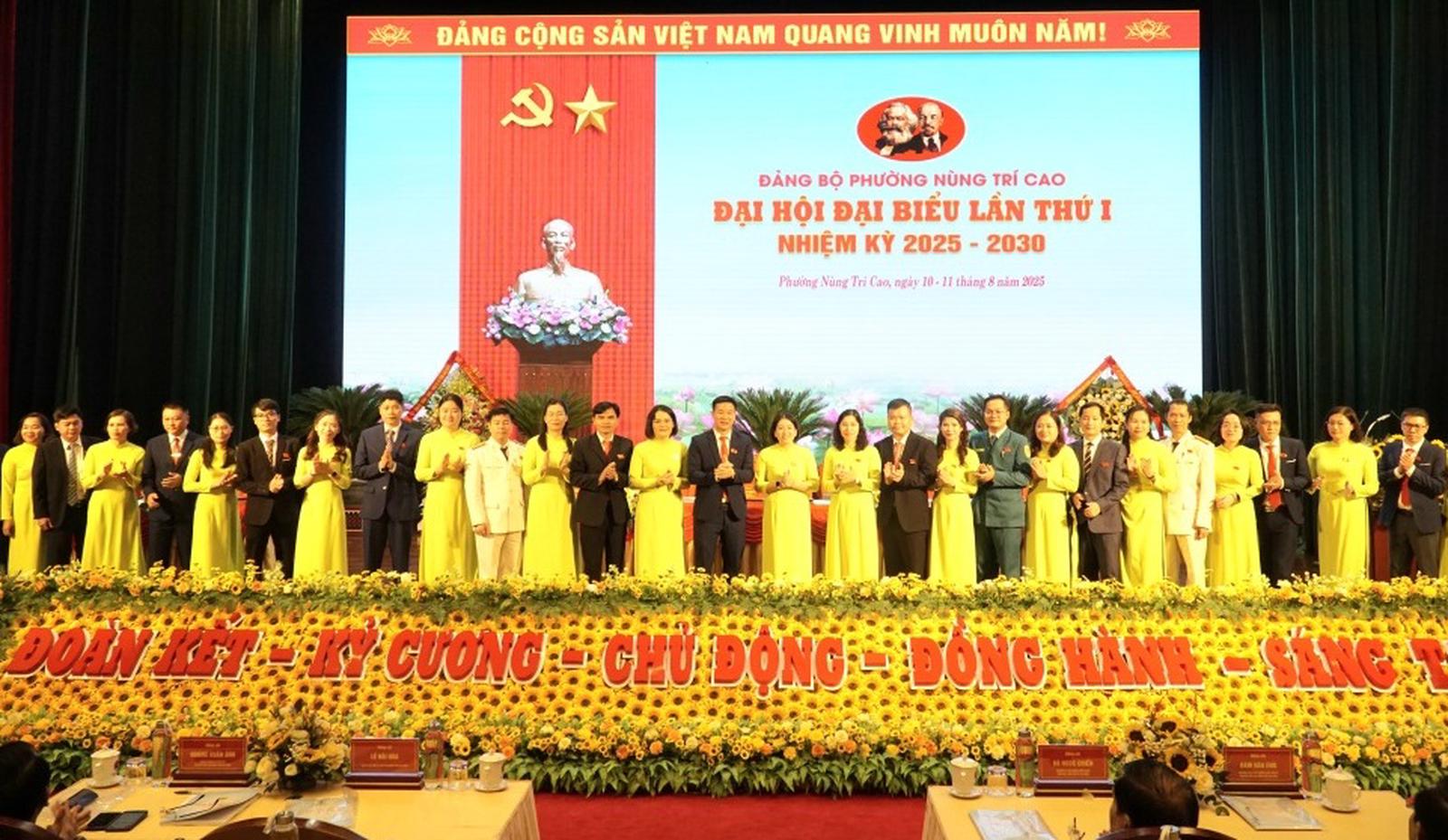 Ban Chấp hành Đảng bộ phường Nùng Chí Cao, nhiệm kỳ 2025 - 2030 ra mắt Đại hội. Ảnh: BCB