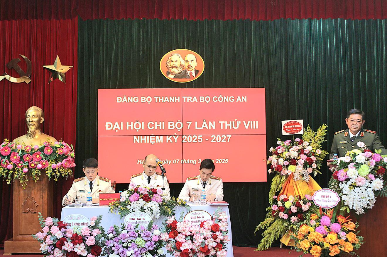 Trung tướng Trần Đức Tuấn, Bí thư Đảng ủy, Chánh Thanh tra Bộ Công an đánh giá, công tác chuẩn bị cho Đại hội được Chi bộ 7 chuẩn bị rất chu đáo từ việc ban hành chương trình, kịch bản đại hội, đặc biệt là báo cáo chính trị được chuẩn bị rất công phu, chi tiết trong 20 trang tài liệu. Các văn kiện Đại hội đã toát lên sự nghiêm túc trong công tác chuẩn bị; các nội dung thể hiện sự đánh giá đầy đủ về kết quả thực hiện nhiệm vụ chính trị trong nhiệm kỳ 7 và công tác lãnh đạo thực hiện các nhiệm vụ chính trị, công tác xây dựng Đảng, công tác chính trị tư tưởng; đánh giá đầy đủ những kết quả đã làm được, những tồn tại, hạn chế, nguyên nhân và rút ra được những bài học kinh nghiệm. Đồng thời, cũng đã đánh giá được những diễn biến thuận lợi, khó khăn từ đó đề ra những nhiệm vụ khá đầy đủ trên tất cả các lĩnh vực trong lãnh đạo nhiệm vụ.