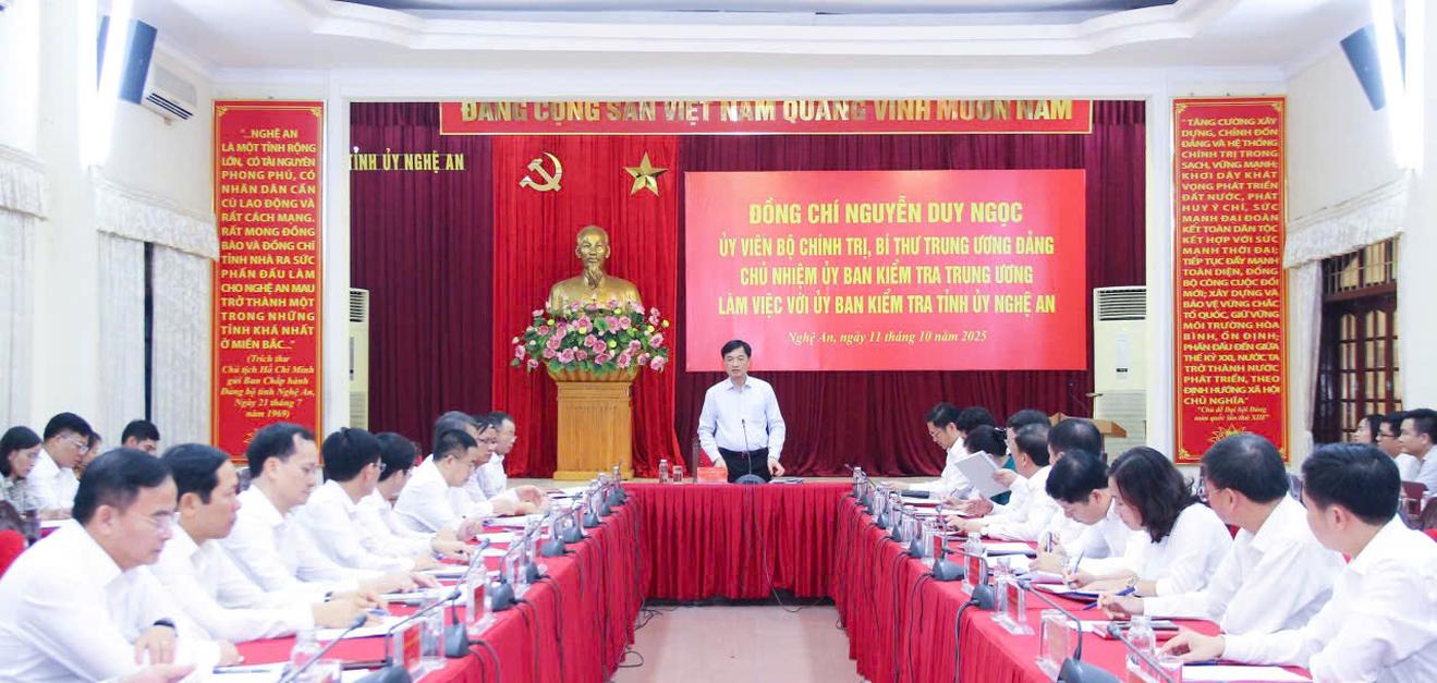 Phát biểu kết luận, đồng chí Nguyễn Duy Ngọc, Ủy viên Bộ Chính trị, Bí thư Trung ương Đảng, Chủ nhiệm Ủy ban Kiểm tra Trung ương ghi nhận và đánh giá cao tinh thần chủ động, sáng tạo của Ủy ban Kiểm tra Tỉnh ủy Nghệ An. Đồng chí nhấn mạnh: “Muốn phát triển nhanh và bền vững thì trước hết phải minh bạch và công khai. Kiểm tra, giám sát chính là công cụ để bảo đảm sự minh bạch ấy; không phải để soi xét, làm khó, mà là để đồng hành, thúc đẩy và tháo gỡ khó khăn từ thực tiễn.”