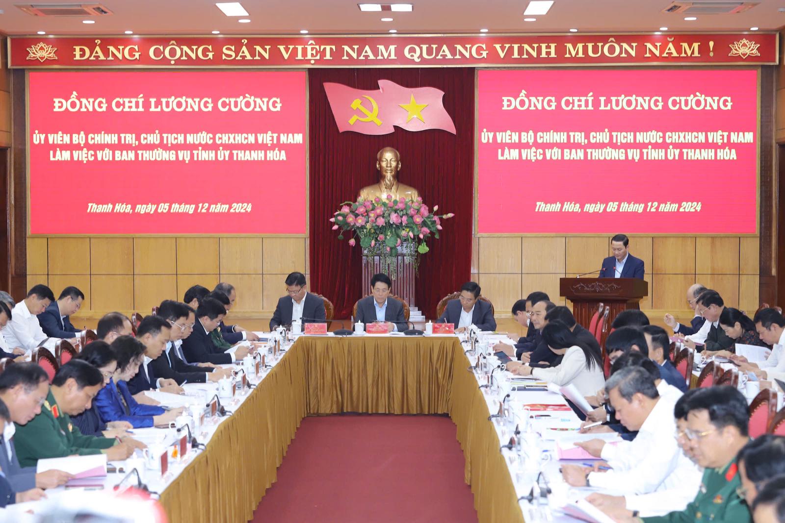 Chủ tịch nước Lương Cường làm việc với Ban Thường vụ Tỉnh ủy Thanh Hóa. Ảnh: Văn Thanh