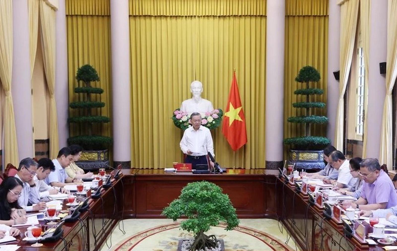Chủ tịch nước Tô Lâm làm việc với các cơ quan về công tác thi đua, khen thưởng. Ảnh: TTXVN