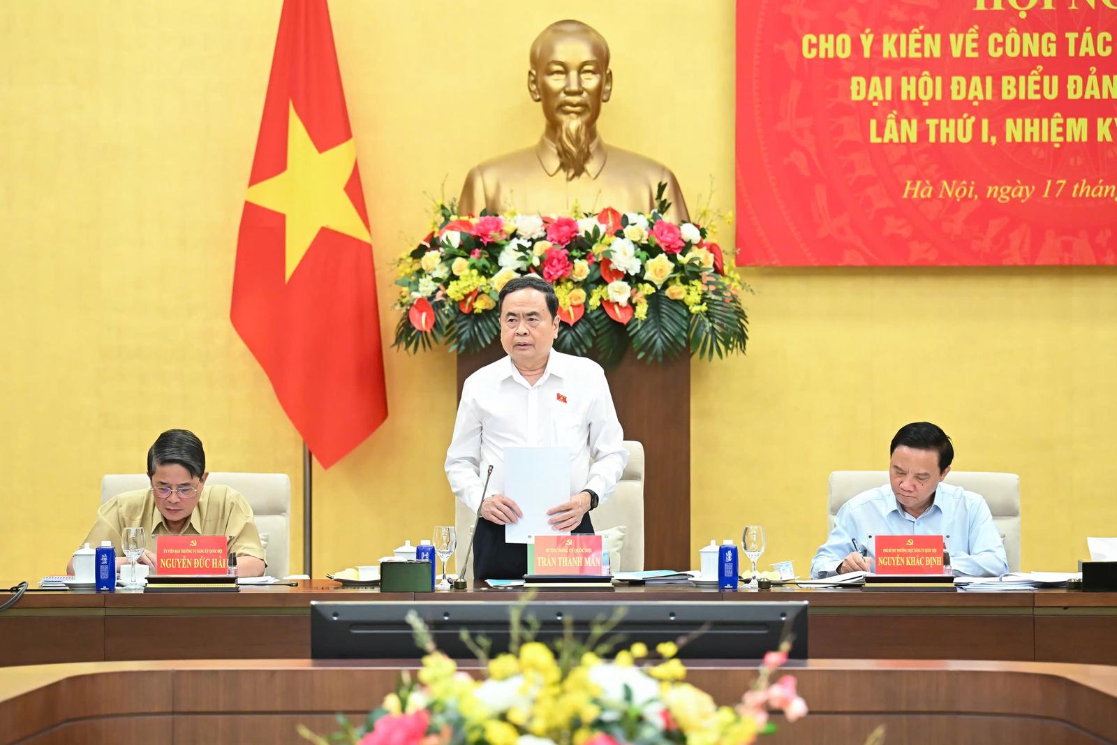 Chủ tịch Quốc hội Trần Thanh Mẫn phát biểu tại Hội nghị của Ban Thường vụ Đảng uỷ Quốc hội cho ý kiến về công tác chuẩn bị tổ chức Đại hội đại biểu Đảng bộ Quốc hội lần thứ Nhất, nhiệm kỳ 2025-2030. Ảnh: P.Thắng