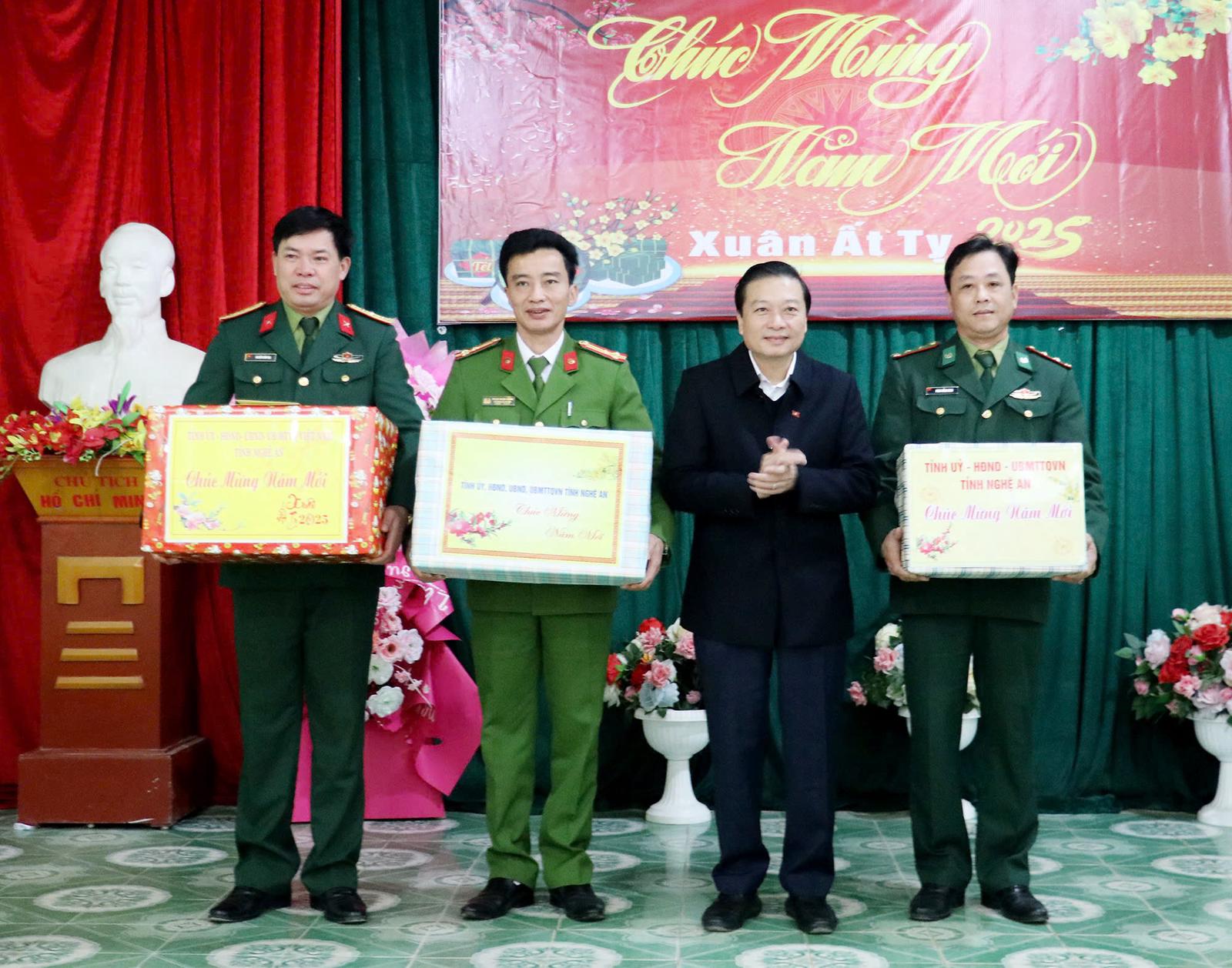 Chủ tịch UBND tỉnh Lê Hồng Vinh chúc Tết động viên lực lượng Công an, Biên phòng huyện Tương Dương. Ảnh: P.V