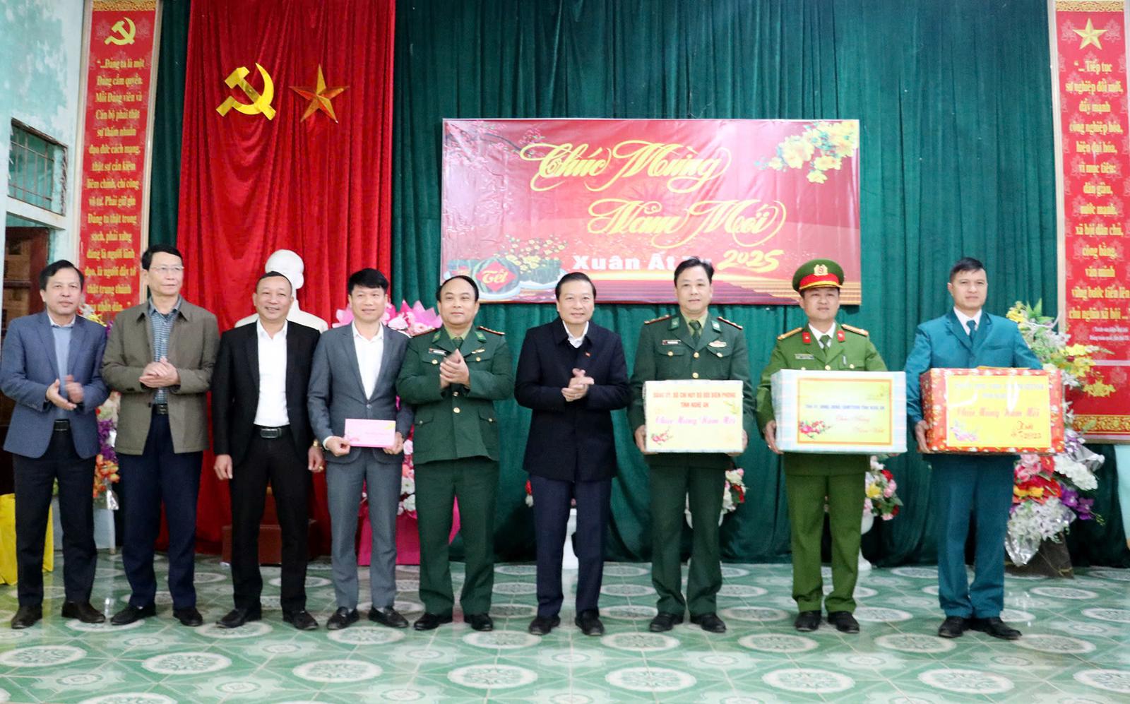 Chủ tịch UBND tỉnh Nghệ An Lê Hồng Vinh tặng quà, chúc Tết các đơn vị ở huyện Tương Dương. Ảnh: P.V