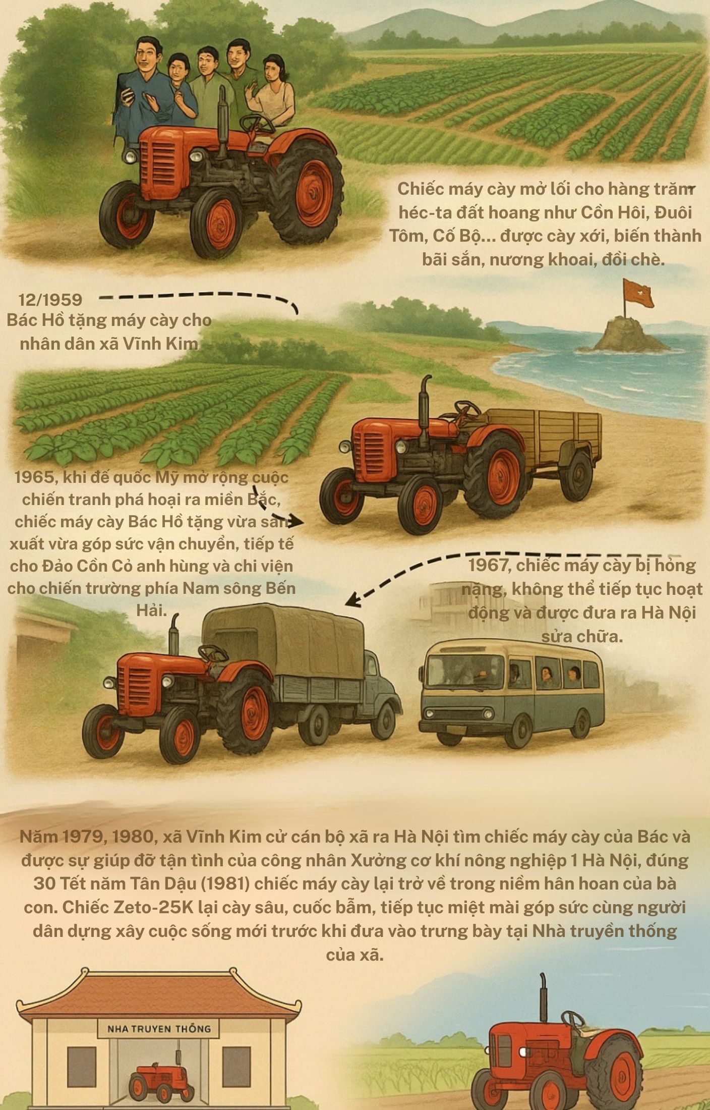 Những năm tháng ấy, chiếc máy cày Zeto-25K cũng là chiếc máy đầu tiên hiện diện trên vùng phi quân sự. Zeto-25K không chỉ cày đất mà gieo lên giấc mơ, mầm hy vọng giữa vùng giới tuyến khắc nghiệt. Và cho đến hôm nay, câu chuyện về chiếc máy cày năm ấy vẫn còn được người Vĩnh Kim nhắc lại như một khúc tráng ca nho nhỏ giữa thời bình – giản dị nhưng sâu xa, như chính tấm lòng của Bác Hồ với nhân dân.