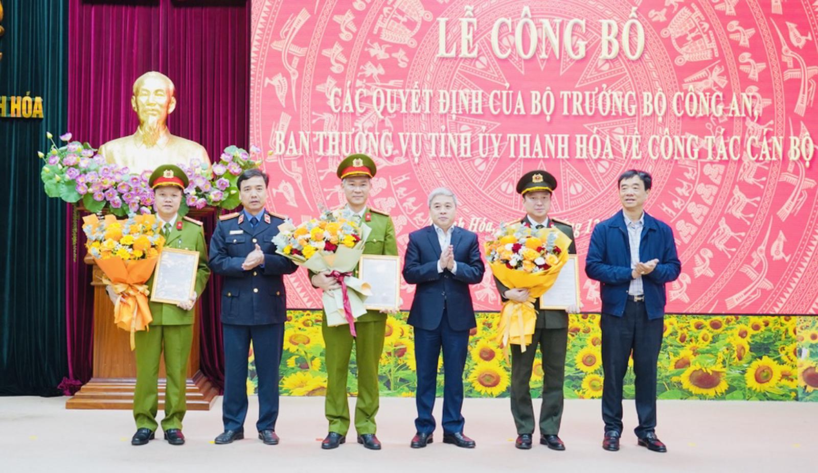 Giám đốc Công an tỉnh Thanh Hoá trao các quyết định cho các Phó Giám đốc. Ảnh: Công an Thanh Hoá
