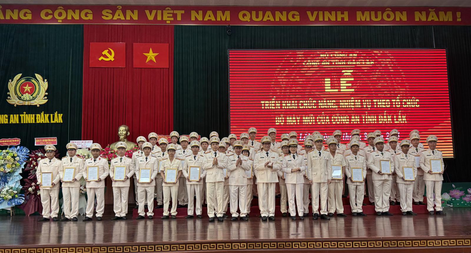 Tại buổi lễ, Công an tỉnh Đắk Lắk cũng đã công bố các quyết định về công tác cán bộ đối với 27 thủ trưởng các đơn vị chức năng thuộc Công an tỉnh; phó trưởng phòng, phó trưởng Công an cấp huyện được điều động nhận công tác mới; 180 Trưởng Công an cấp xã.