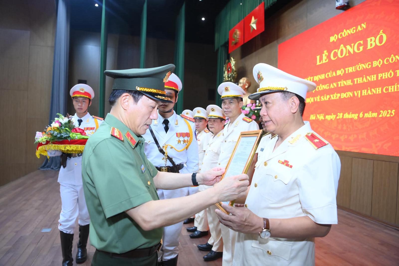 Bộ trưởng Bộ Công an Đại tướng Lương Tam Quang trao quyết định bổ nhiệm Thiếu tướng Nguyễn Đức Thuận, Giám đốc Công an tỉnh Tuyên Quang sau sáp nhập. Ảnh: ND