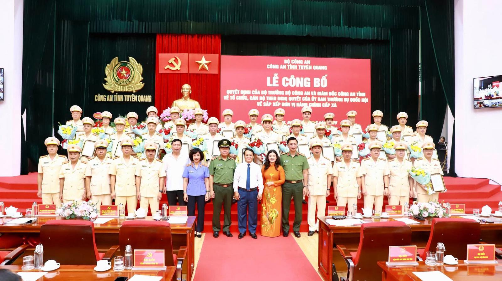 Tại buổi lễ, Ban Tổ chức đã công bố các quyết định của Bộ trưởng Bộ Công an về việc bố trí 8 đồng chí giữ chức vụ Phó Giám đốc Công an tỉnh Tuyên Quang (sau hợp nhất).