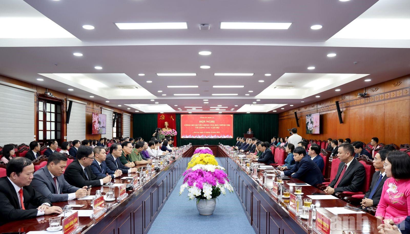 Quang cảnh Hội nghị công bố các Quyết định của Bộ Chính trị về công tác cán bộ tại Tỉnh ủy Sơn La. Ảnh: ND
