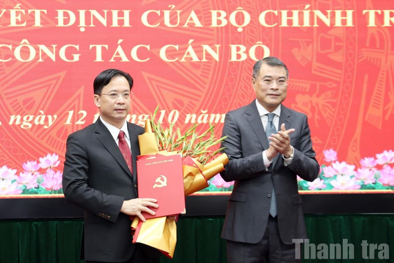 Đồng chí Lê Minh Hưng, Trưởng Ban Tổ chức Trung ương, trao quyết định của Bộ Chính trị điều động, chỉ định đồng chí Hoàng Văn Nghiệm giữ chức Bí thư Tỉnh ủy Sơn La.. Ảnh: ND