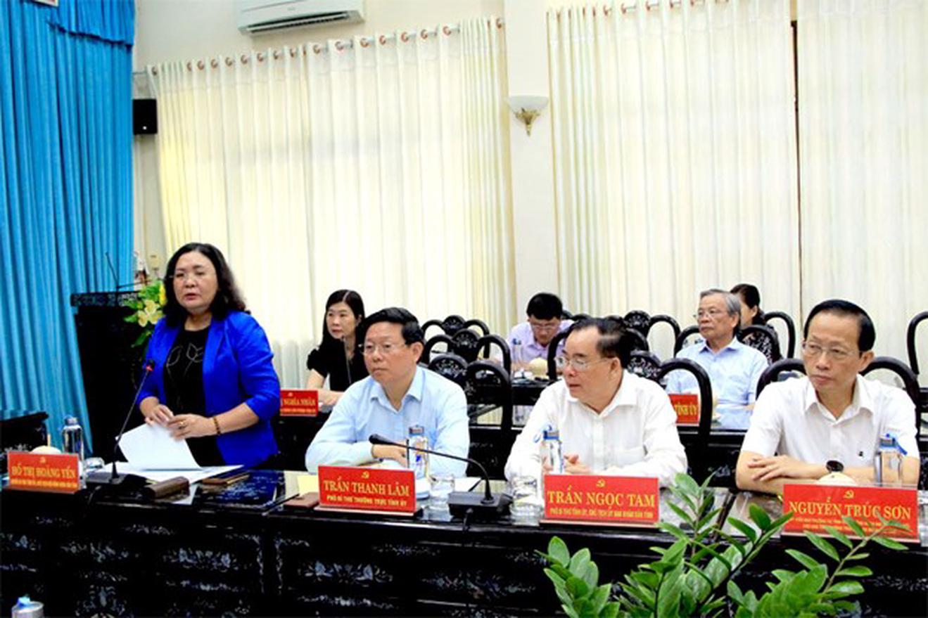 Tham dự hội nghị có các đồng chí thành viên Đoàn kiểm tra; phía tỉnh Bến Tre có Quyền Bí thư Tỉnh ủy-Chủ tịch HĐND tỉnh Hồ Thị Hoàng Yến; Phó Bí thư Thường trực Tỉnh ủy Trần Thanh Lâm; Phó Bí thư Tỉnh ủy-Chủ tịch UBND tỉnh Trần Ngọc Tam, Phó Chủ tịch Thường trực UBND tỉnh-Trưởng Đoàn ĐBQH tỉnh Nguyễn Trúc Sơn, các đồng chí ủy viên Ban Thường vụ Tỉnh ủy Bến Tre.