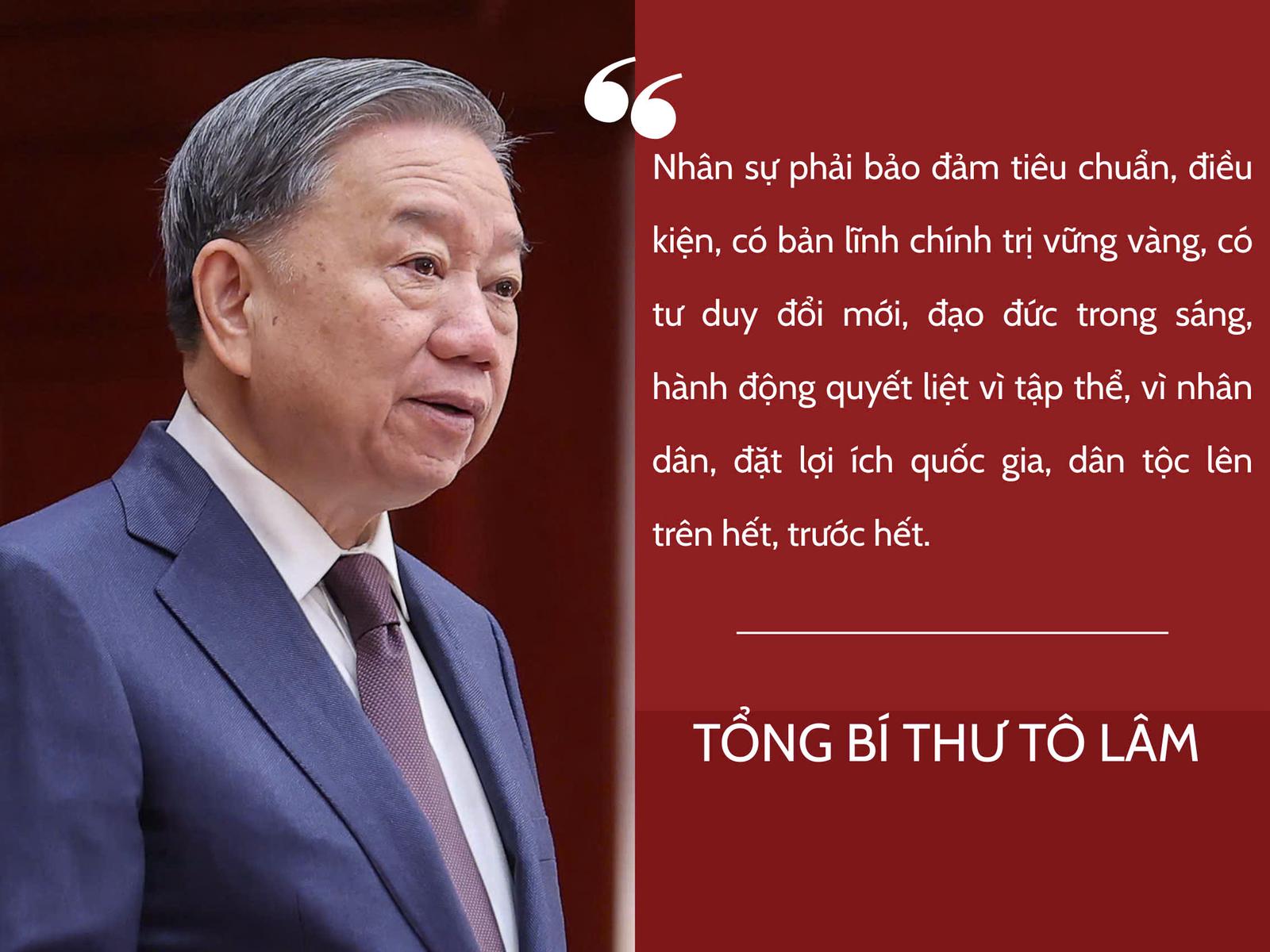 Tổng Bí thư Tô Lâm nhấn mạnh về công tác cán bộ. Ảnh: TH