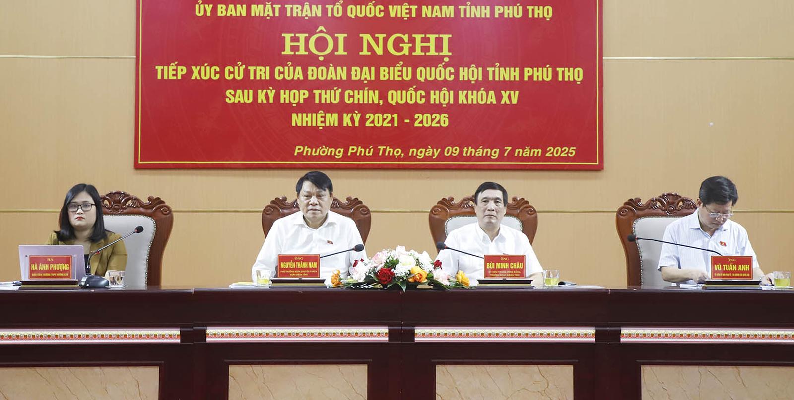 Thay mặt Đoàn ĐBQH tỉnh Phú Thọ, Trưởng Đoàn ĐBQH tỉnh Bùi Minh Châu trân trọng cảm ơn các cử tri và Nhân dân đã thẳng thắn trao đổi, bày tỏ ý kiến, tâm tư nguyện vọng và thể hiện sự đồng thuận, thống nhất cao đối với các chủ trương, quyết sách quan trọng của Đảng, Nhà nước trong thời gian vừa qua.