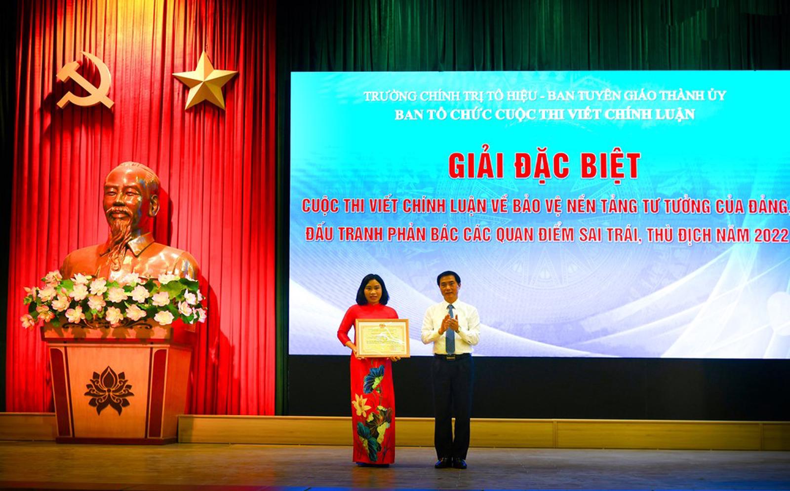 (Thanh tra)- Ngày 23/8, Ban Tuyên giáo Thành ủy phối hợp với Trường Chính trị Tô Hiệu tổ chức hội nghị tổng kết, trao giải cuộc thi viết chính luận về bảo vệ nền tảng tư tưởng của Đảng, đấu tranh phản bác các quan điểm sai trái, thù địch năm 2022.