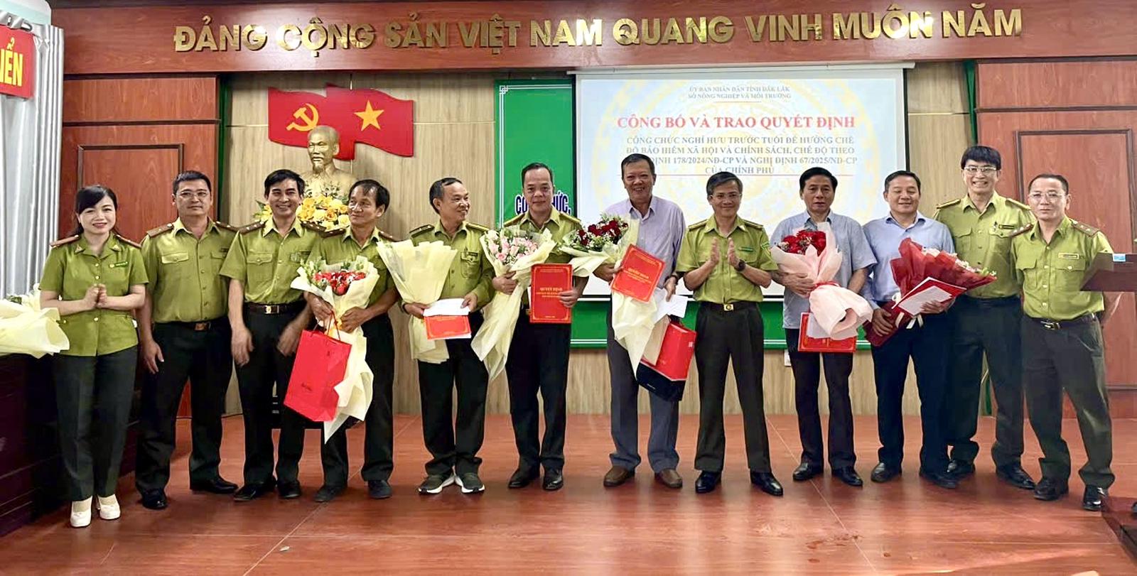 Trước đó, Chi cục Kiểm lâm tỉnh Đắk Lắk đã có tờ trình gửi Sở Nông nghiệp và Phát triển nông thôn (nay là Sở Nông nghiệp và Môi trường) tỉnh Đắk Lắk xem xét, giải quyết cho 37 công chức và 7 người lao động được nghỉ hưu trước tuổi, nghỉ thôi việc và hưởng chính sách, chế độ theo quy định tại Nghị định số 178/2024/NĐ-CP ngày 31/12/2024 của Chính phủ theo quy định.