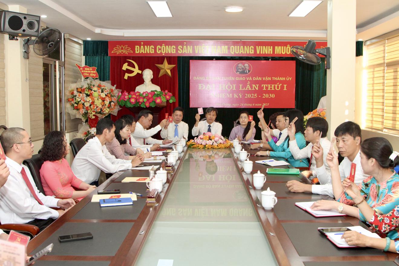 Các đại biểu, biểu quyết tại Đại hội Đảng bộ Ban Tuyên giáo và Dân vận Thành ủy. Ảnh: TT