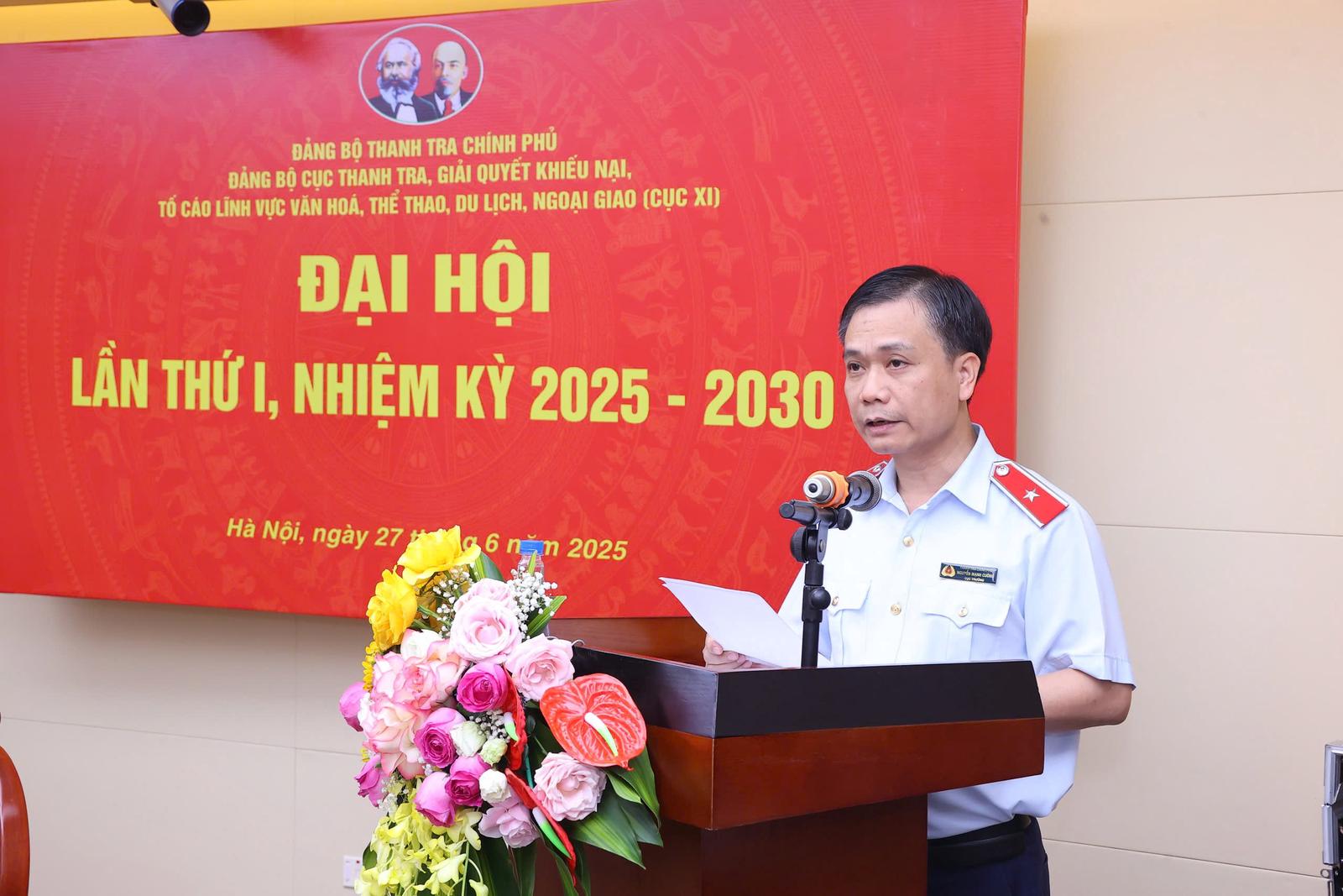 Phó Tổng Thanh tra mong toàn thể cán bộ, đảng viên trong Đảng bộ Cục XI phát huy tinh thần đoàn kết, hoàn thành xuất sắc nhiệm vụ, đặc biệt hoàn thành các mục tiêu đề ra, góp phần quan trọng hoàn thành xuất sắc vào các nhiệm vụ chính trị của ngành.