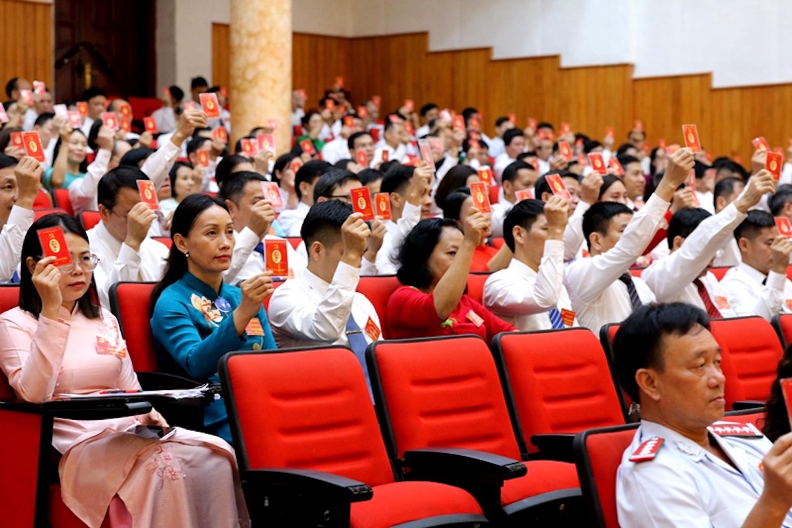 Các đại biểu biểu quyết thông qua Nghị quyết Đại hội. Ảnh: Tuyết Anh