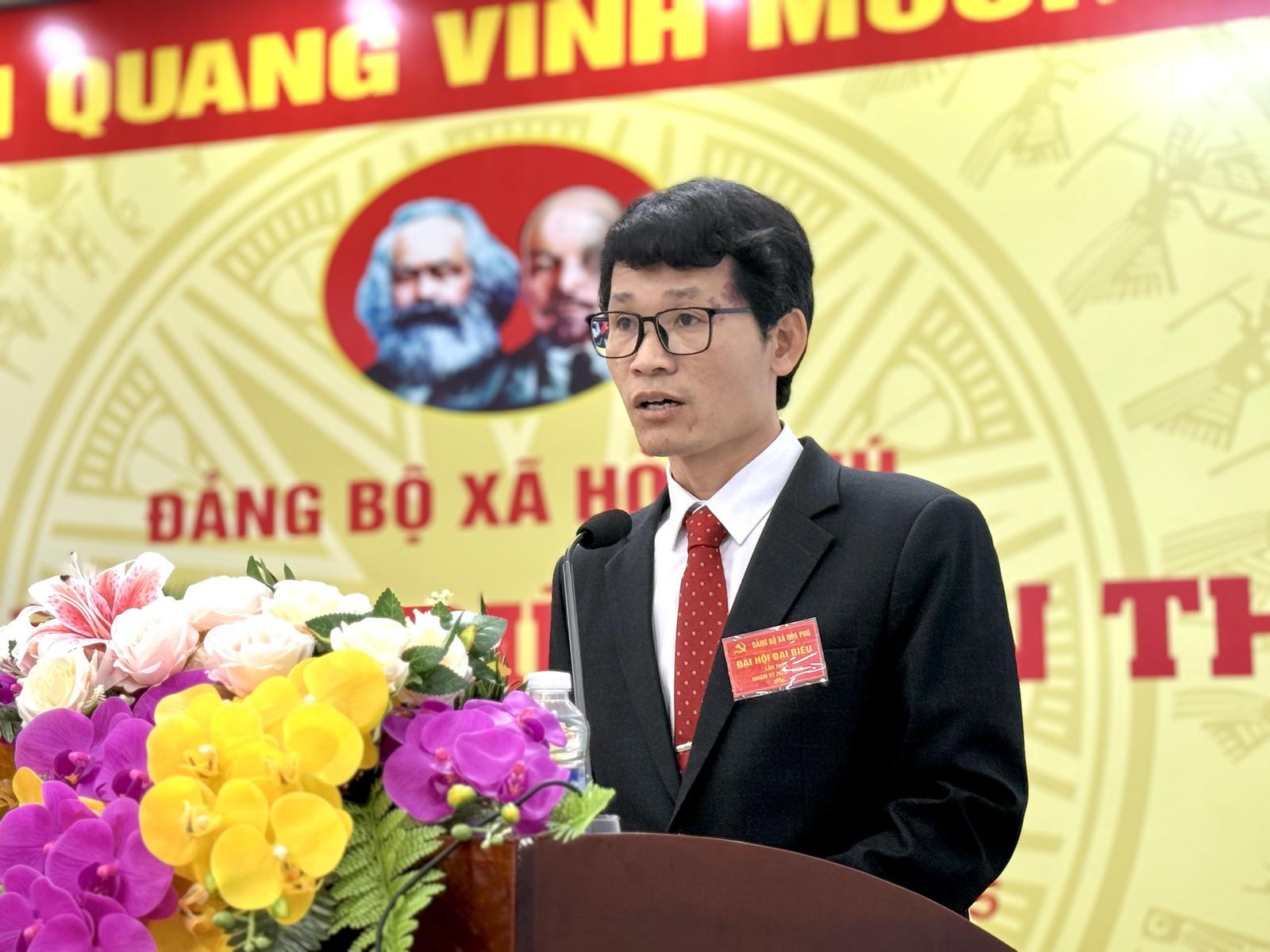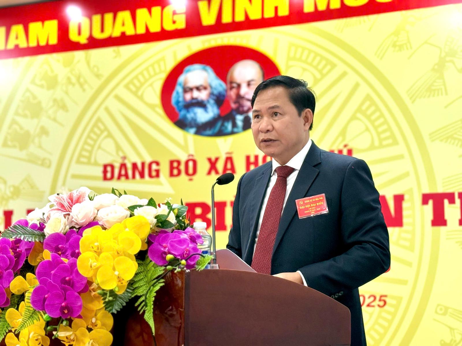 Ông Phạm Tiến Hưng, Bí thư Đảng ủy xã Hòa Phú phát biểu khai mạc Đại hội đại biểu Đảng bộ xã Hòa Phú lần thứ I, nhiệm kỳ 2025-2030. Ảnh: NG