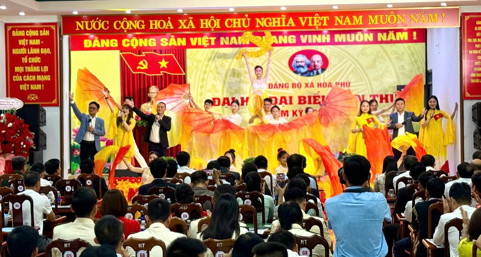 Chương trình văn nghệ chào mừng Đại hội đại biểu Đảng bộ xã Hòa Phú lần thứ I, nhiệm kỳ 2025-2030. Ảnh: NG