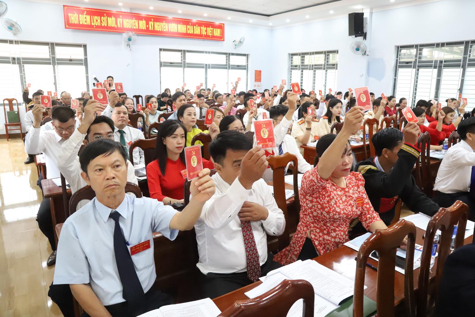 Các đại biểu dự Đại hội biểu quyết thông qua các chỉ tiêu Nghị quyết Đại hội. Ảnh: CL