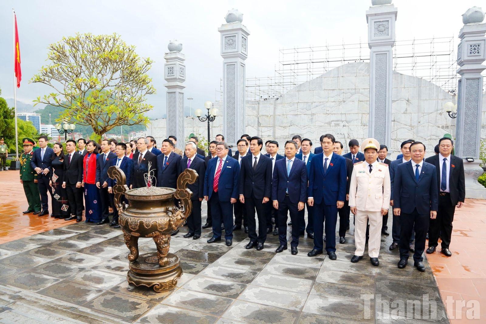 Dâng hương, dâng hoa tưởng niệm Anh linh Chủ tịch Hồ Chí Minh và các Anh hùng liệt sĩ, Đoàn đại biểu đã báo cáo những thành tích nổi bật trong thực hiện Nghị quyết Đại hội Đảng bộ tỉnh lần thứ XV, nhiệm kỳ 2020 - 2025, về công tác xây dựng Đảng, củng cố hệ thống chính trị, phát triển kinh tế - xã hội, đảm bảo quốc phòng - an ninh. Khẳng định những kết quả, thành tích đạt được trong 5 năm qua tạo thế và lực quan trọng cho sự phát triển của tỉnh những năm tới.
