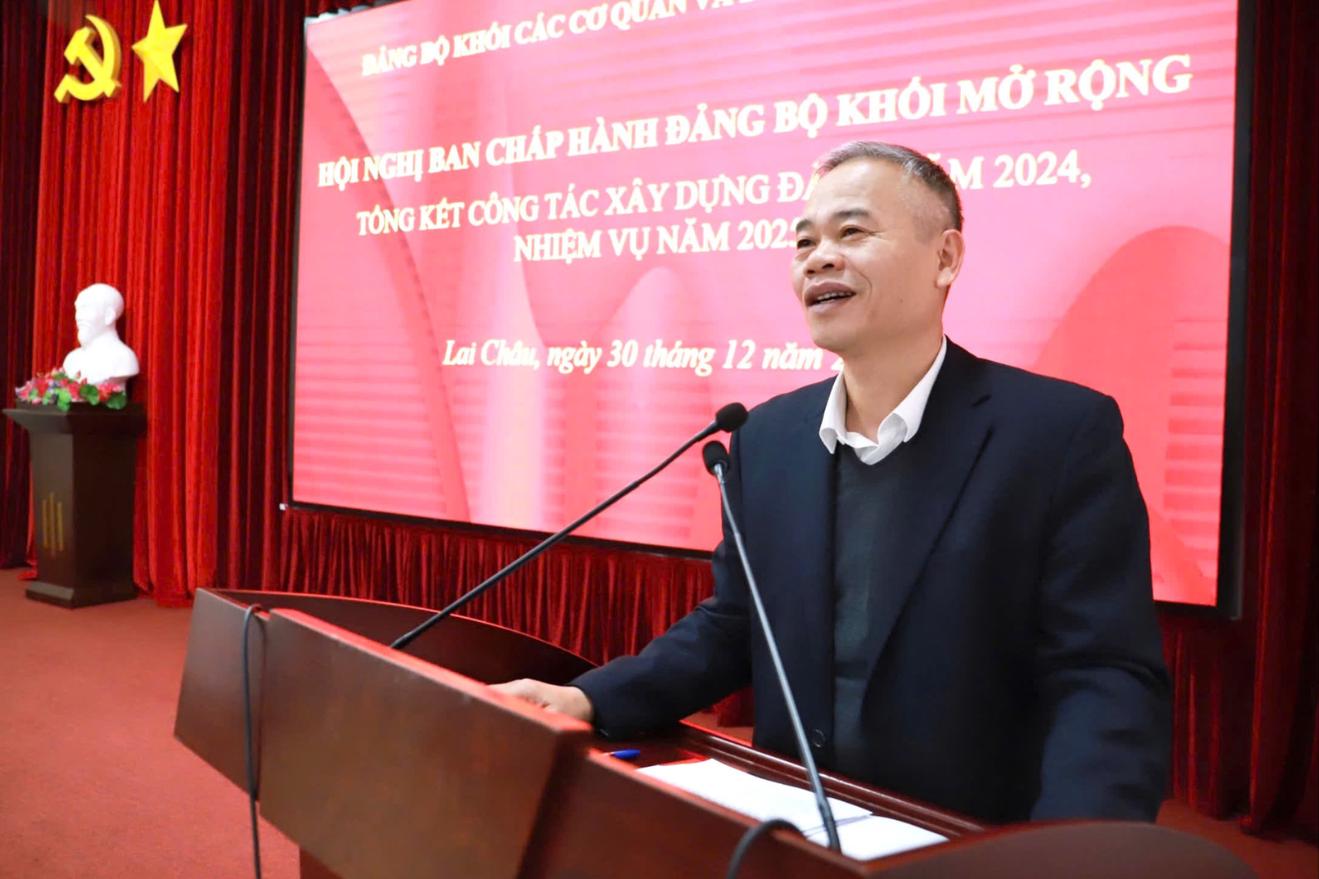 Bí thư Đảng ủy Khối các cơ quan và doanh nghiệp tỉnh Vũ Văn Lương phát biểu tại Hội nghị tổng kết công tác xây dựng Đảng năm 2024. Ảnh: Phương Thanh