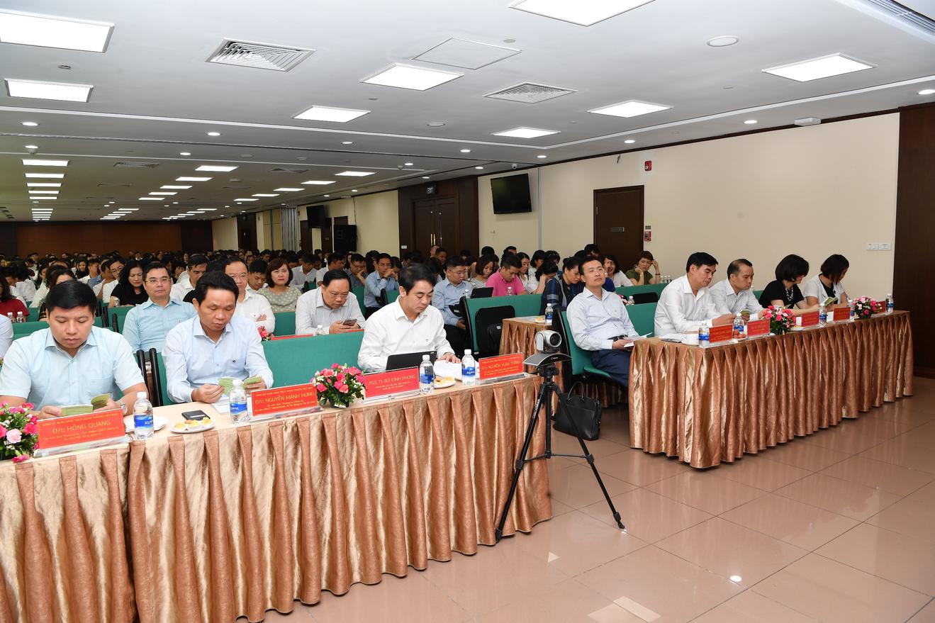 Các đại biểu tham dự Hội nghị truyền hình trực tuyến Hội nghị học tập Chỉ thị 05–CT/TW chuyên đề năm 2019 tại điểm cầu Trụ sở chính.