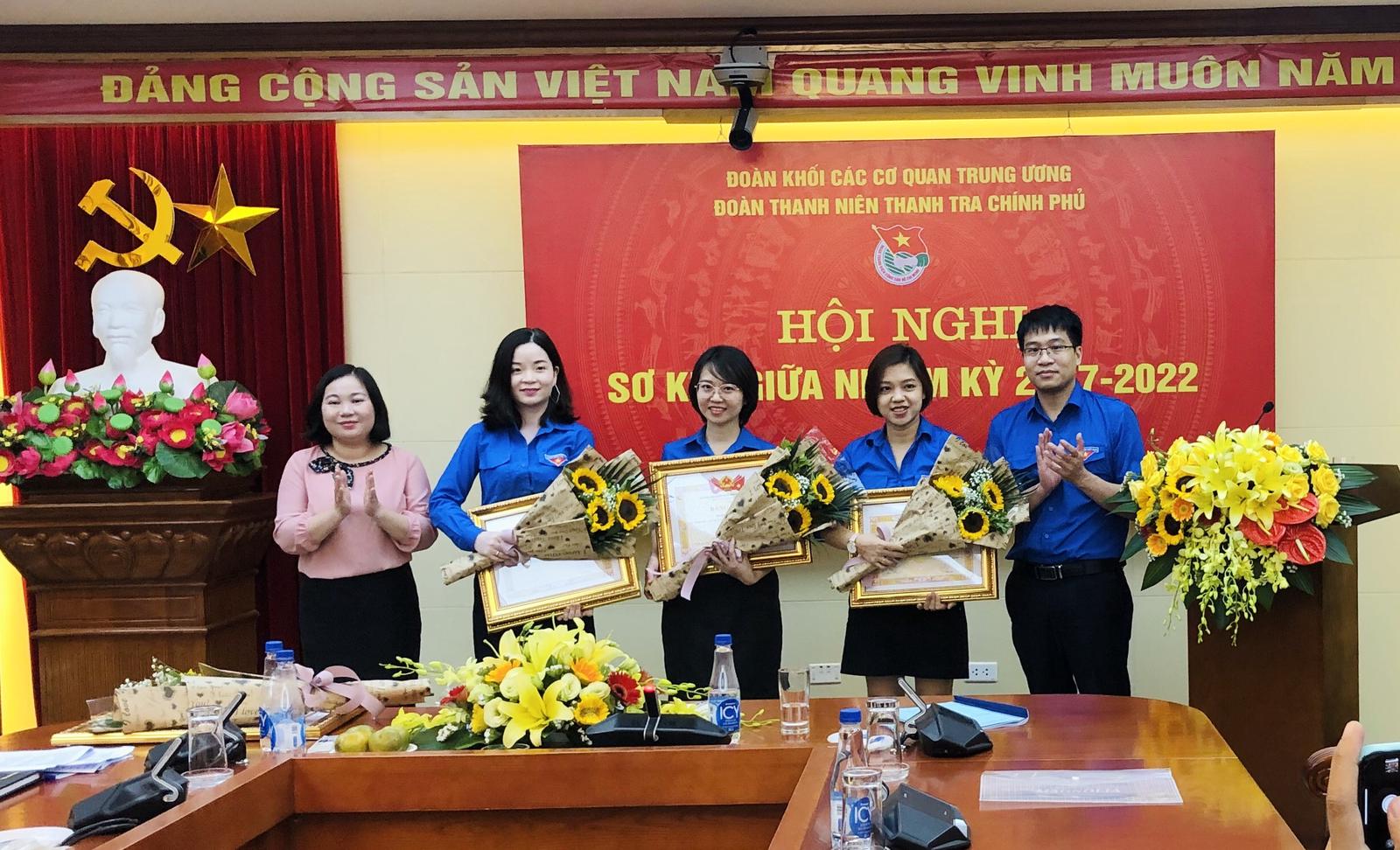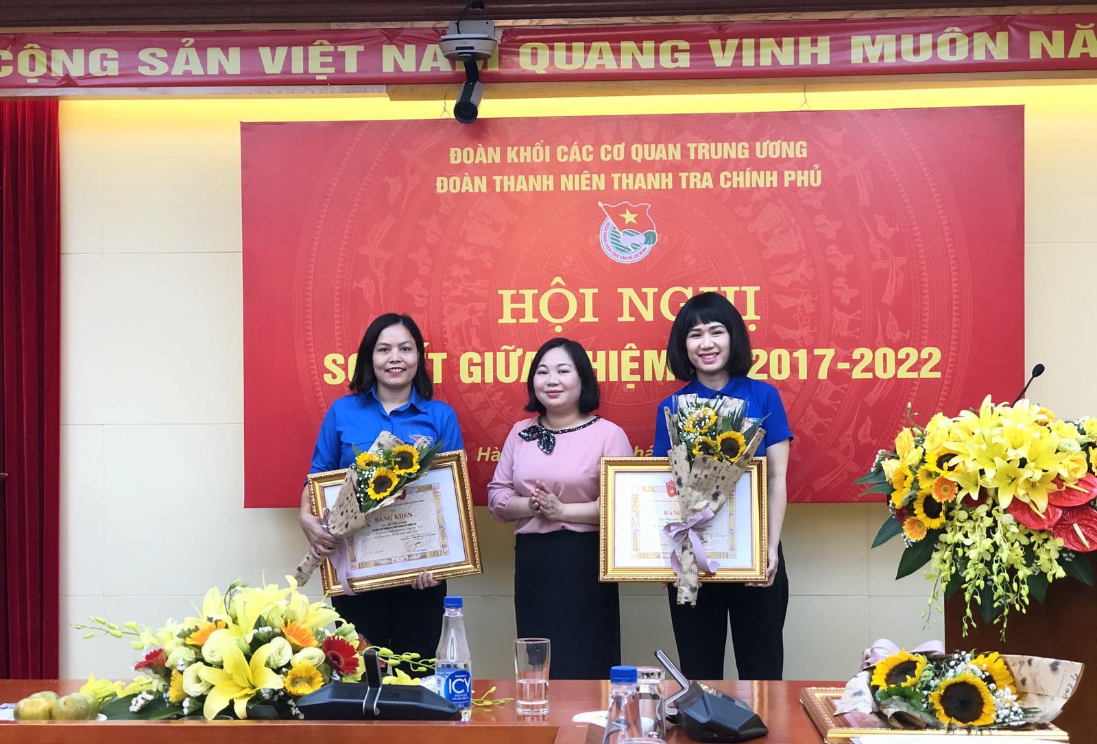 Đồng chí Nguyễn Thị Minh Tâm, Trưởng ban Tổ chức - Kiểm tra Đoàn Khối Các cơ quan Trung ương trao Bằng khen của Đoàn Khối Các cơ quan Trung ương cho các Chi đoàn. Ảnh: TH