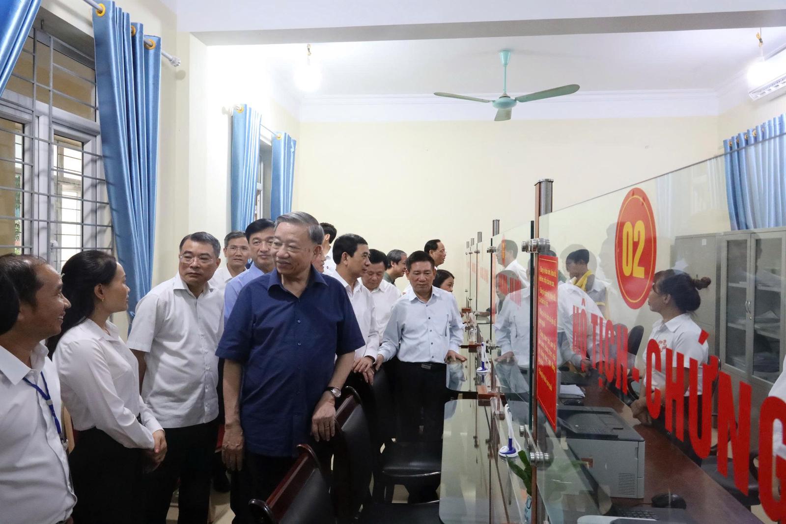 Tổng Bí thư Tô Lâm thăm, kiểm tra thực tế tại Trung tâm Phục vụ hành chính công xã Si Pa Phìn. Ảnh: Ngọc Thuỷ