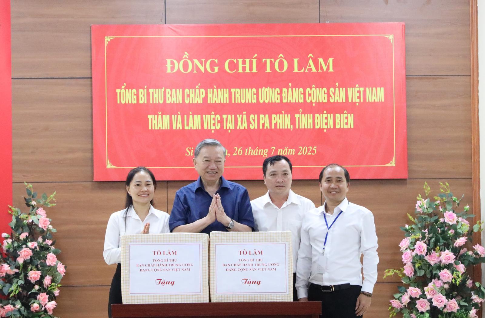Tổng Bí thư Tô Lâm tặng quà cho chính quyền xã Si Pa Phìn. Ảnh: Ngọc Thuỷ