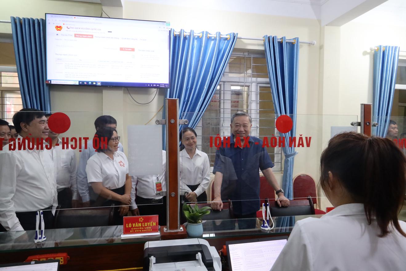 Tại xã Si Pa Phìn, Tổng Bí thư Tô Lâm kiểm tra hoạt động, quá trình tiếp nhận, xử lý và trả kết quả một số thủ tục hành chính của cán bộ Trung tâm Phục vụ hành chính công.