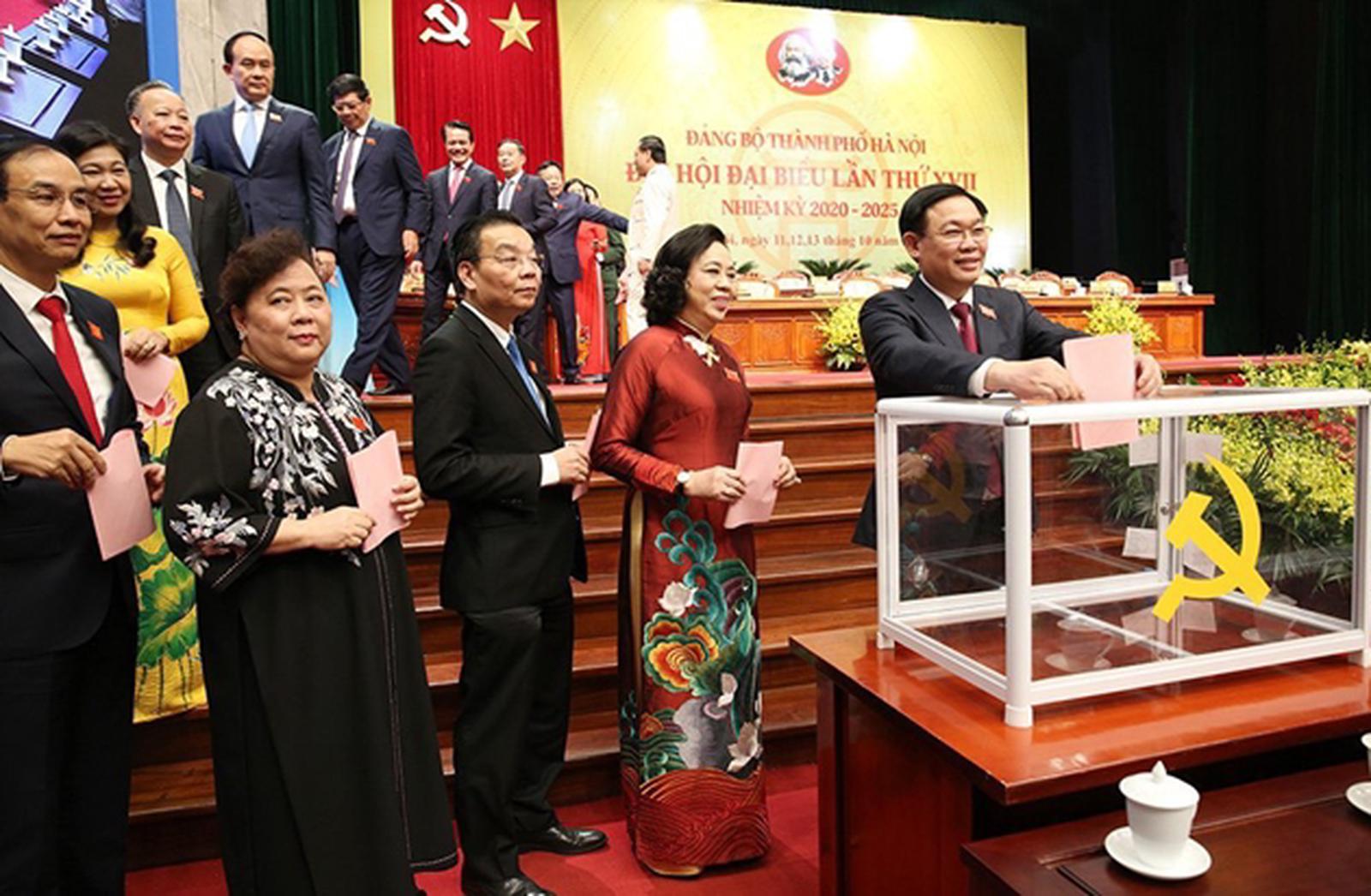 Chiều 12/10, Đại hội đã tiến hành bầu cử Ban Chấp hành (BCH) Đảng bộ TP Hà Nội khóa XVII, nhiệm kỳ 2020-2025. 100% đại biểu đã biểu quyết nhất trí danh sách đề cử bầu BCH Đảng bộ TP khóa XVII gồm 80 đồng chí. Đồng thời, 100% đại biểu cũng đã biểu quyết nhất trí số lượng BCH Đảng bộ TP khoá XVII là 71 đồng chí (so với khoá XVI, số lượng Ủy viên BCH đã giảm 6,5%).