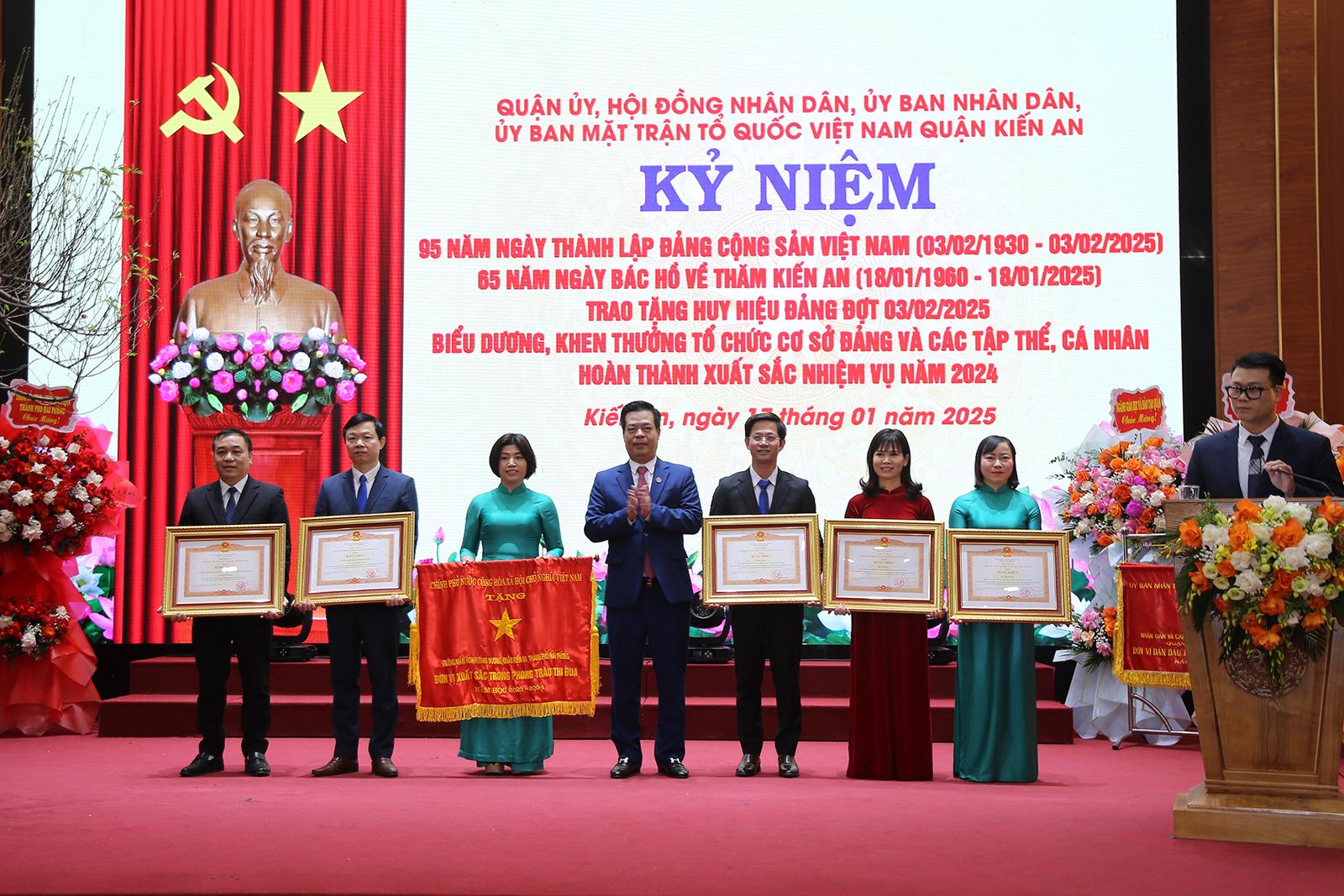 Nhân dịp này, 3 tập thể và 3 cá nhân vinh dự được nhận Cờ thi đua và Bằng khen của Thủ tướng Chính phủ; Chủ tịch UBND thành phố tặng Cờ thi đua cho 4 tập thể; tặng Danh hiệu “Tập thể lao động xuất sắc” cho 11 tập thể; Bằng khen cho 5 tập thể và 6 cá nhân hoàn thành xuất sắc nhiệm vụ năm 2024. Ban Thường vụ Quận ủy tặng Giấy khen biểu dương 8 tổ chức cơ sở Đảng hoàn thành xuất sắc nhiệm vụ năm 2024.