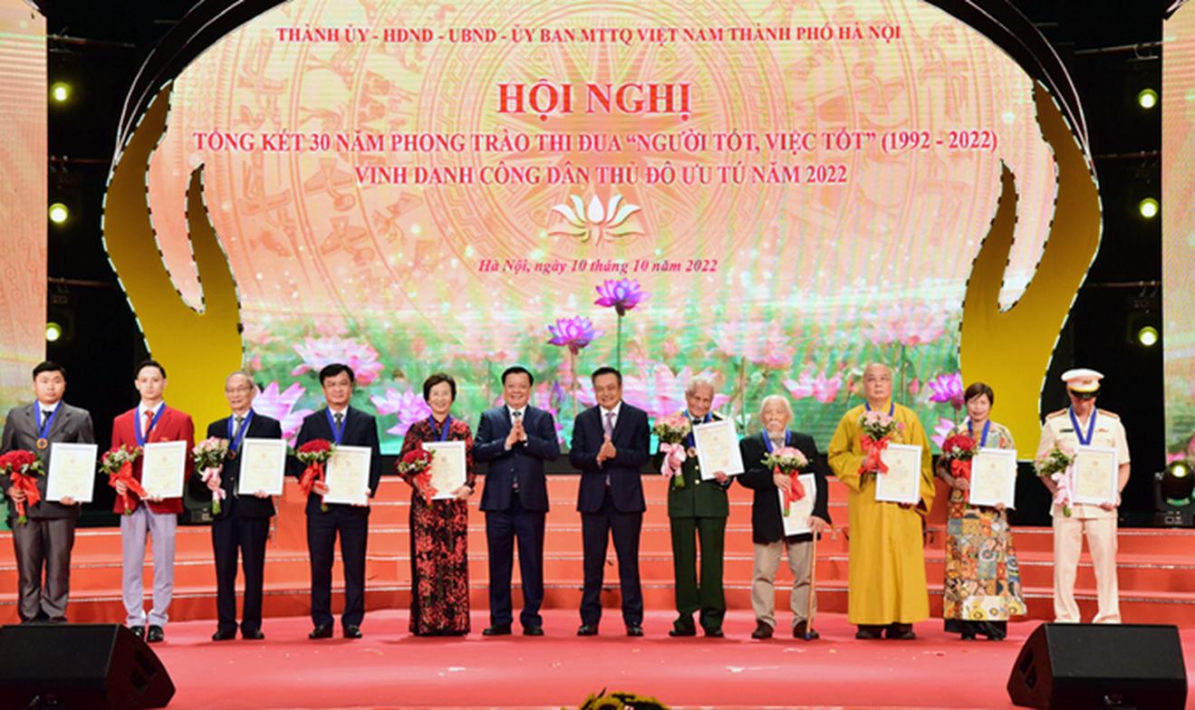 Đến nay, Hà Nội đã có gần 30.000 cá nhân được tặng danh hiệu "Người tốt, việc tốt", 119 cá nhân có đóng góp tích cực, tiêu biểu trên các lĩnh vực được tặng danh hiệu Công dân Thủ đô ưu tú. Tại hội nghị hôm nay, thành phố tiếp tục tặng danh hiệu "Người tốt, việc tốt" cho 747 cá nhân, tặng danh hiệu Công dân Thủ đô ưu tú cho 10 cá nhân tiêu biểu.