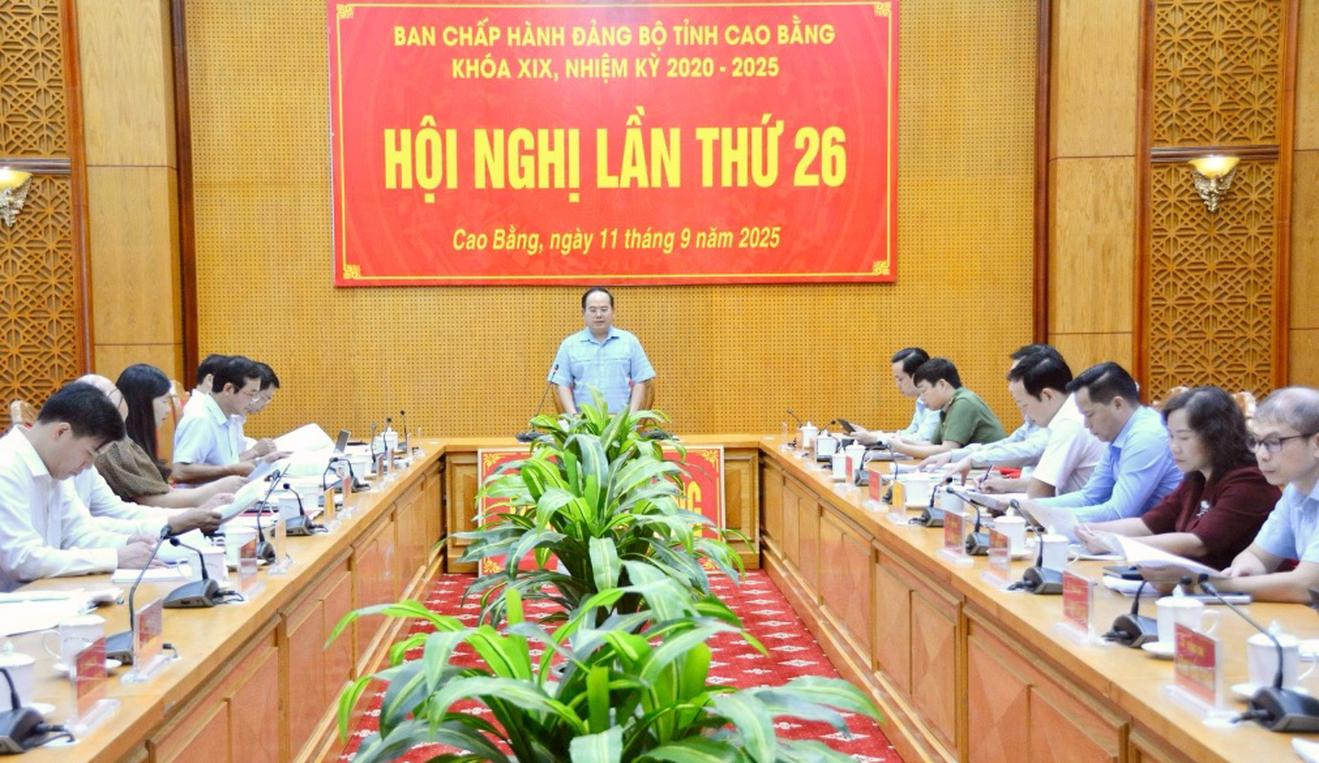 (Thanh tra) - Sáng 11/9/2025, Ban Chấp hành (BCH) Đảng bộ tỉnh Cao Bằng khóa XIX, nhiệm kỳ 2020 - 2025 tổ chức Hội nghị lần thứ 26, cho ý kiến thống nhất, thông qua một số nội dung chuẩn bị Đại hội đại biểu Đảng bộ tỉnh lần thứ XX, nhiệm kỳ 2025 - 2030.