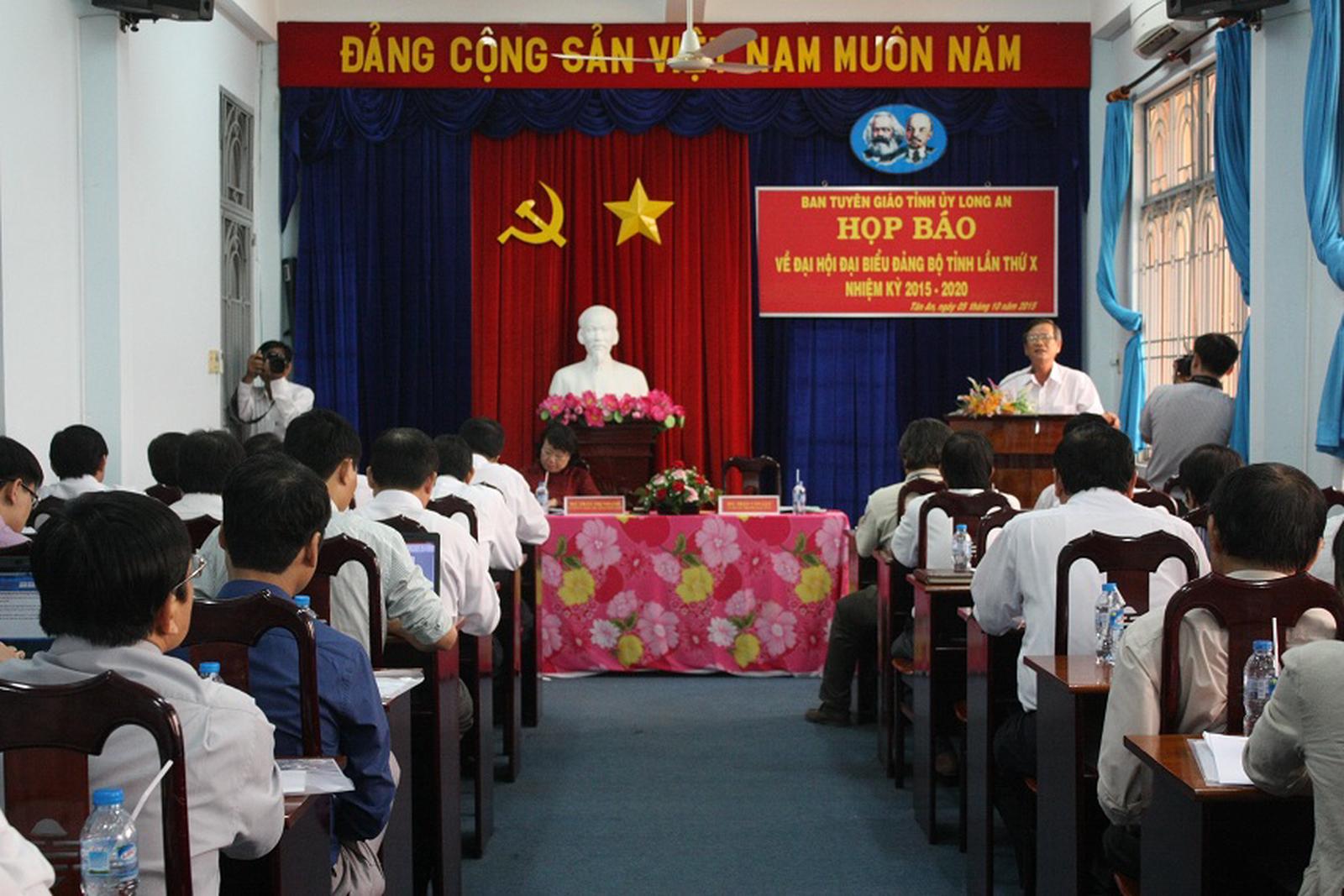 (Thanh tra) - Chiều 5/10/2015, tại TP Tân An, Ban Tuyên giáo Tỉnh ủy, Sở Thông tin và Truyền thông tỉnh Long An đã tổ chức họp báo thông tin về Đại hội Đảng bộ tỉnh lần thứ X, nhiệm kỳ 2015 - 2020.