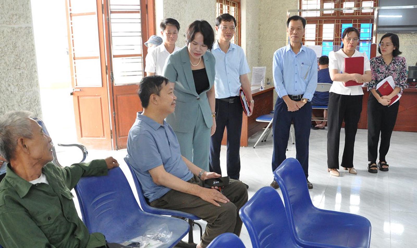 Bà Quách Thị Hương, Hiệu trưởng Trường Chính trị Nguyễn Văn Linh, Tổ trưởng Tổ công tác, kiểm tra tại Trung tâm Phục vụ hành chính công xã Nguyễn Trãi. Ảnh: Hồng Ngọc