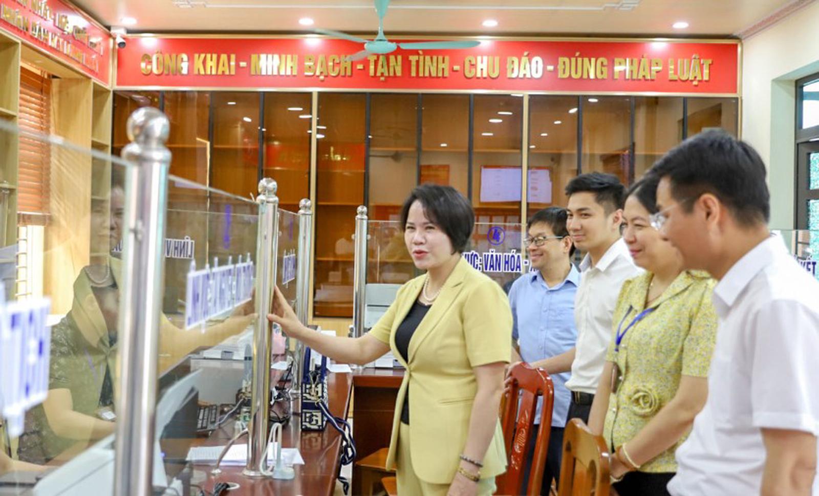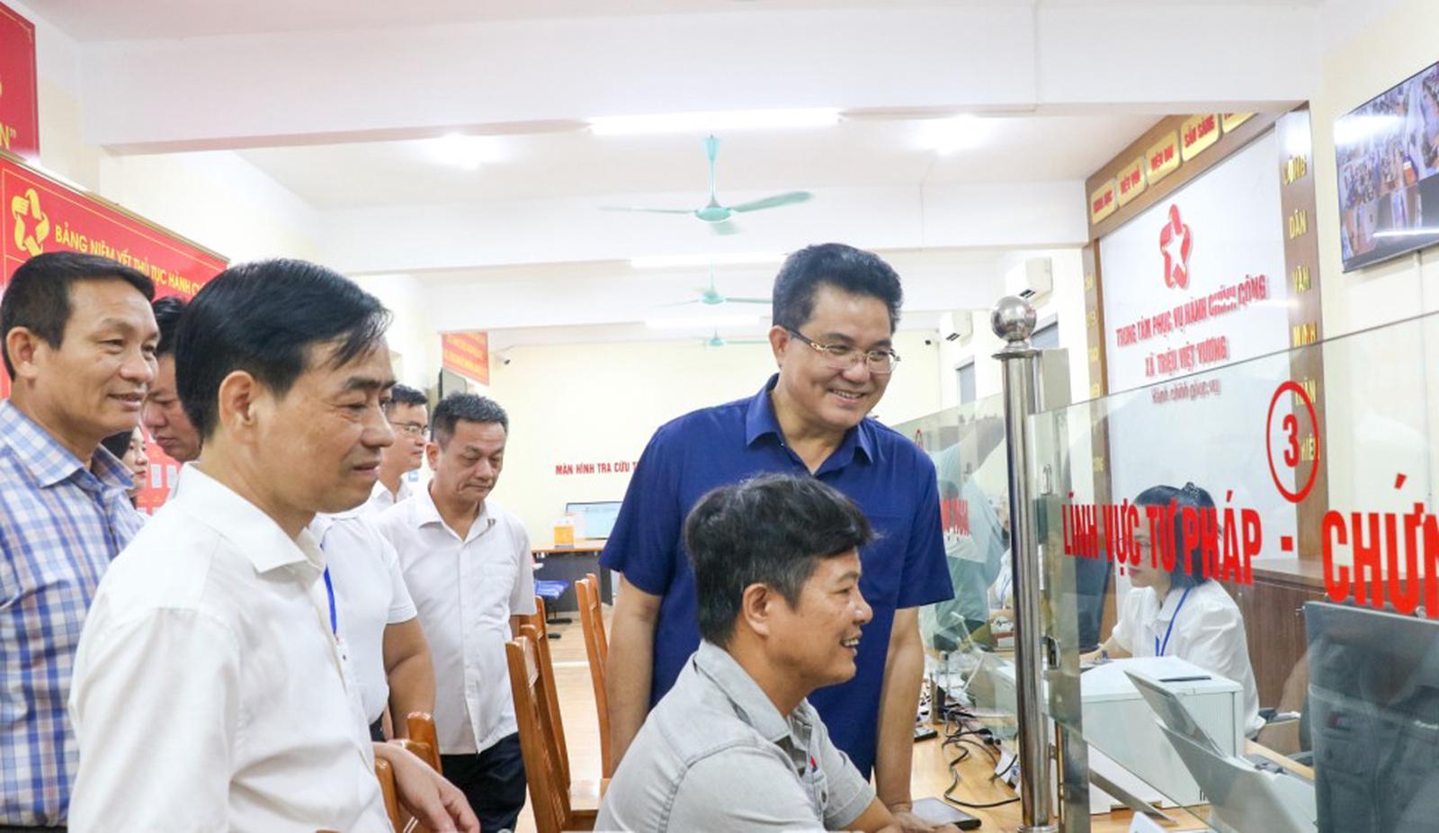Tổ Công tác số 3 kiểm tra tại Trung tâm Phục vụ hành chính công xã Triệu Việt Vương. Ảnh: Vân Anh