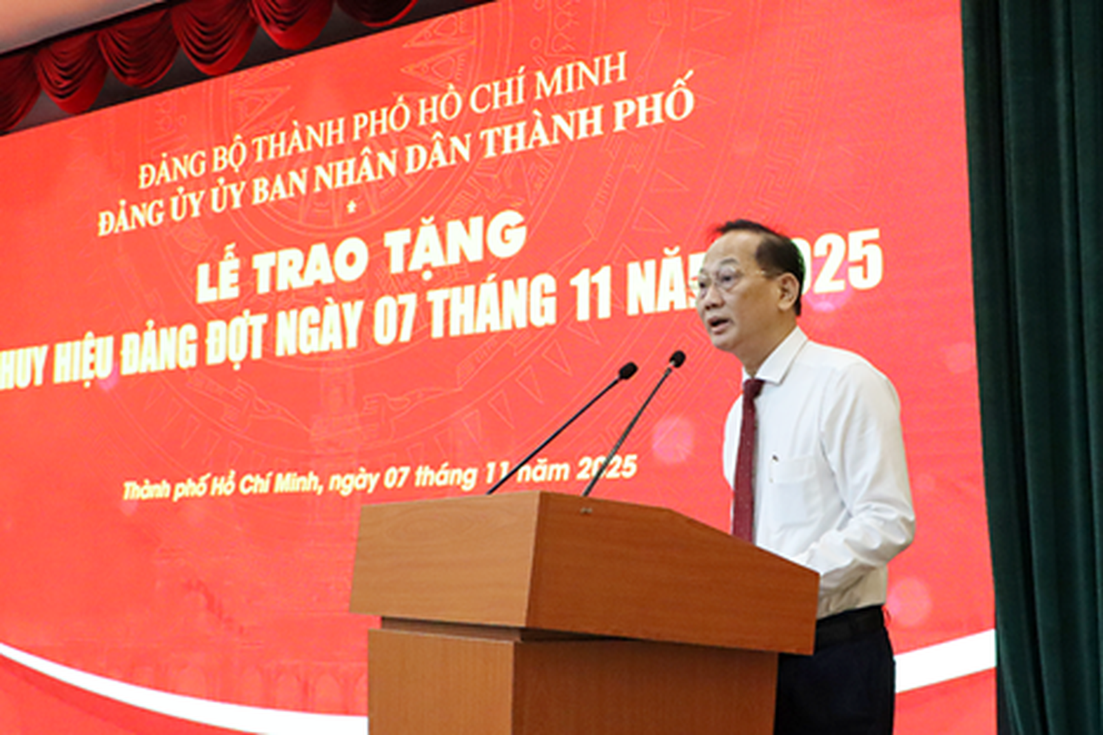 (Thanh tra) - Nhân dịp kỷ niệm 108 năm Cách mạng Tháng Mười Nga (1917–2025), Đảng ủy UBND TP Hồ Chí Minh đã trang trọng tổ chức Lễ trao Huy hiệu Đảng. Đây là hoạt động chính trị giàu ý nghĩa, thể hiện tình cảm tri ân sâu sắc của Đảng bộ Thành phố đối với các thế hệ đảng viên kiên trung, những người đã dành trọn tâm huyết và trí tuệ cho sự nghiệp cách mạng của Đảng, của dân tộc.
