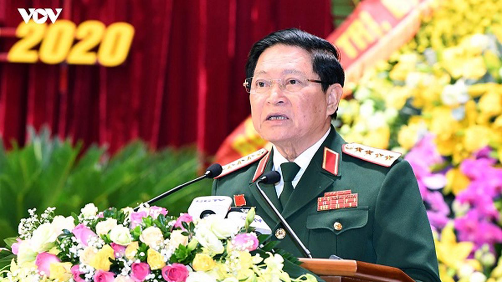 Đại tướng Ngô Xuân Lịch phát biểu chỉ đạo Đại hội đại biểu Đảng bộ tỉnh Hà Giang lần thứ XVII. Ảnh: Ngọc Thành/VOV