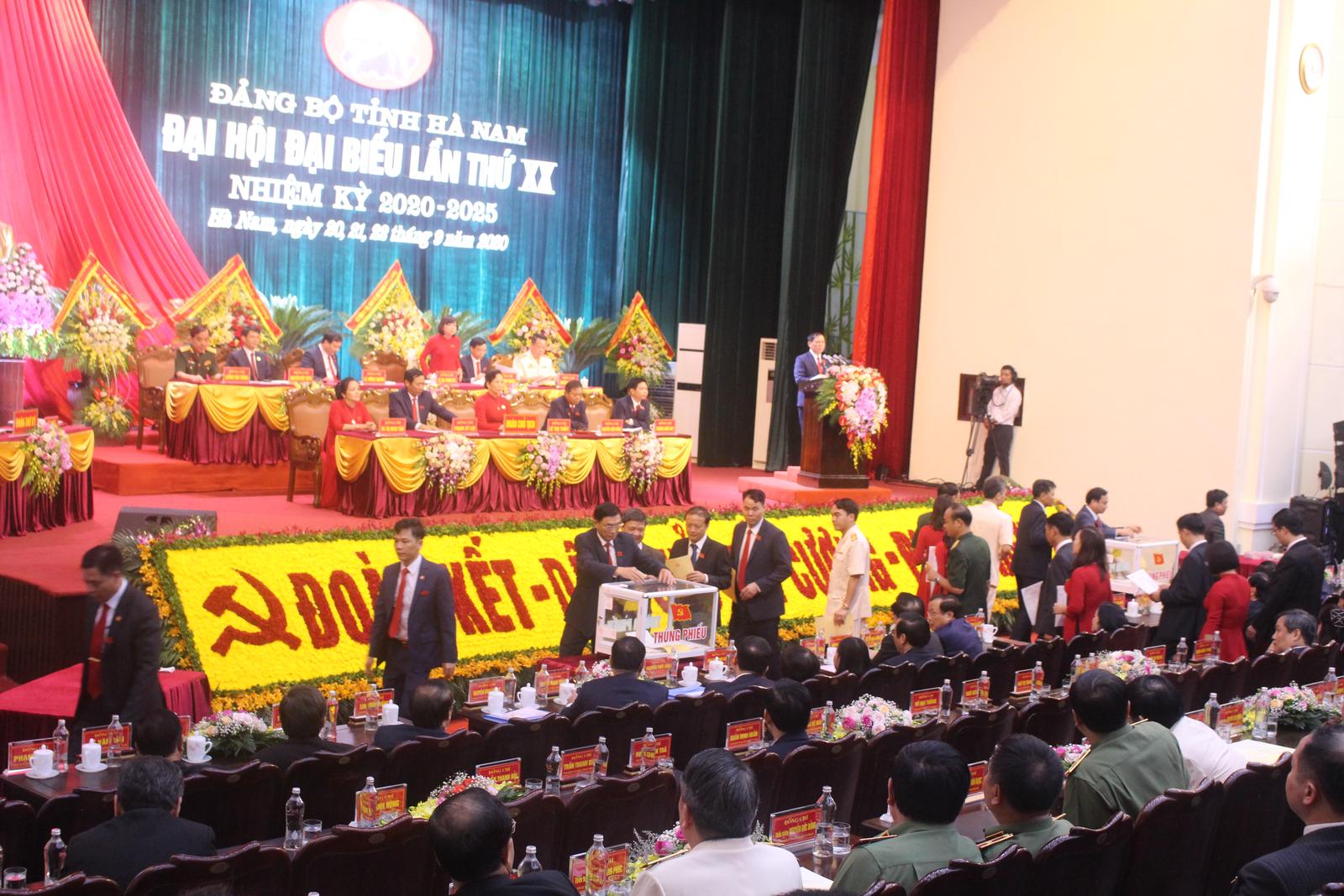 Các đại biểu bỏ phiếu bầu Ban chấp hành Đảng bộ tỉnh Hà Nam nhiệm kỳ 2020-2025 (ảnh - Trần Kiên)
