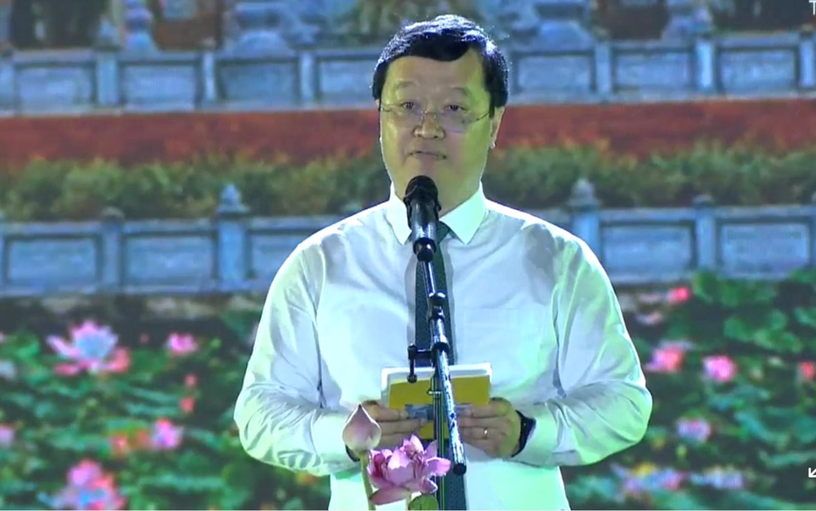 Diễn văn đọc tại buổi lễ, ông Nguyễn Đúc Trung - Chủ tịch UBND tỉnh Nghệ An nêu rõ: Nghệ An - mảnh đất “địa linh nhân kiệt”, quê hương của nhiều bậc anh hùng, hào kiệt, danh nhân văn hóa lớn; nổi tiếng với truyền thống hiếu học, trọng hiền tài; nhân dân đoàn kết, nhân ái, nghĩa tình, cần cù lao động, kiên cường, quả cảm, sẵn sàng xả thân vì nghĩa lớn. Mỗi người dân Nghệ An luôn vinh dự và tự hào về truyền thống lịc, văn hóa, yêu nước và cách mạng của quê hương. Càng tự hào hơn khi mảnh đất này đã sinh thành một vĩ nhân kiệt xuất - Chủ tịch Hồ Chí Minh - Anh hùng giải phóng dân tộc, Danh nhân văn hóa thế giới, vị lãnh tụ muôn vàn kính yêu của dân tộc Việt Nam, nhà hoạt động quốc tế xuất sắc, người bạn lớn mẫu mực, thủy chung của bạn bè năm châu, sứ giả của hòa bình, đoàn kết, hữu nghị, hợp tác và phát triển giữa các dân tộc.