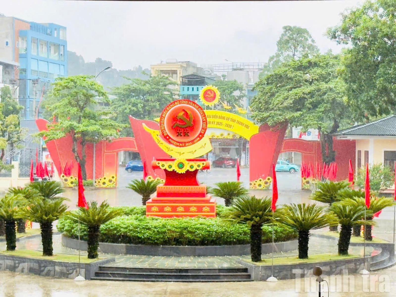 Không khó rộn ràng chuẩn bị chào đón Đại hội Đảng bộ tỉnh Thanh Hóa. Ảnh: Văn Thanh