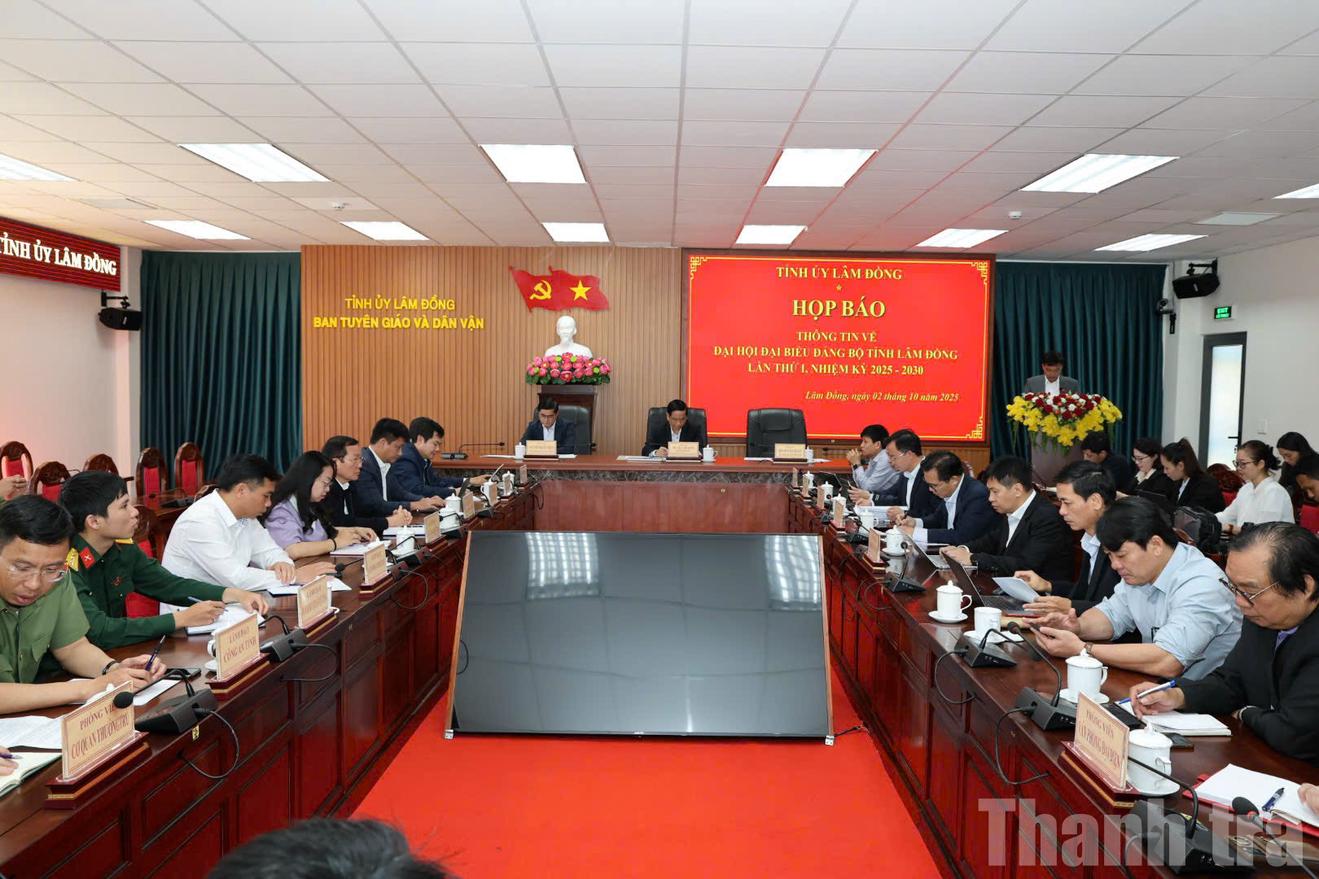 Toàn cảnh buổi họp báo thông tin về Đại hội đại biểu Đảng bộ tỉnh Lâm Đồng lần thứ I, nhiệm kỳ 2025 – 2030 sáng nay (2/10). Ảnh: Vũ Linh