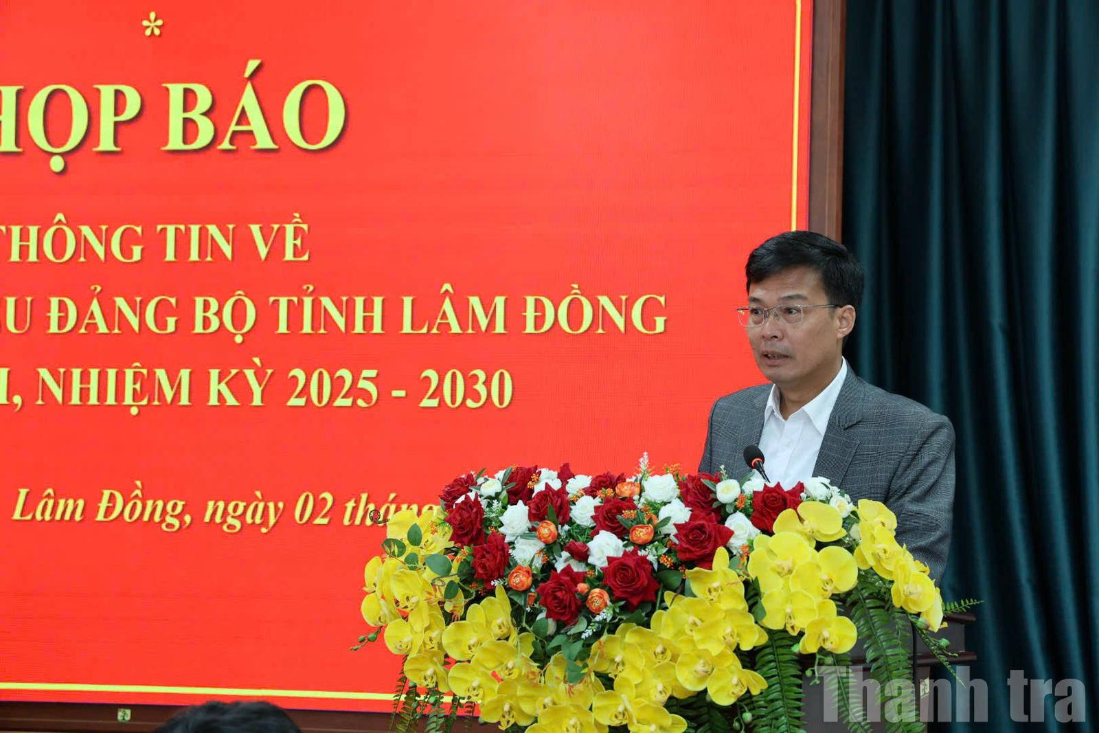 (Thanh tra) - Sáng 2/10, Tỉnh ủy Lâm Đồng tổ chức họp báo thông tin về Đại hội đại biểu Đảng bộ tỉnh lần thứ I, nhiệm kỳ 2025 – 2030.
