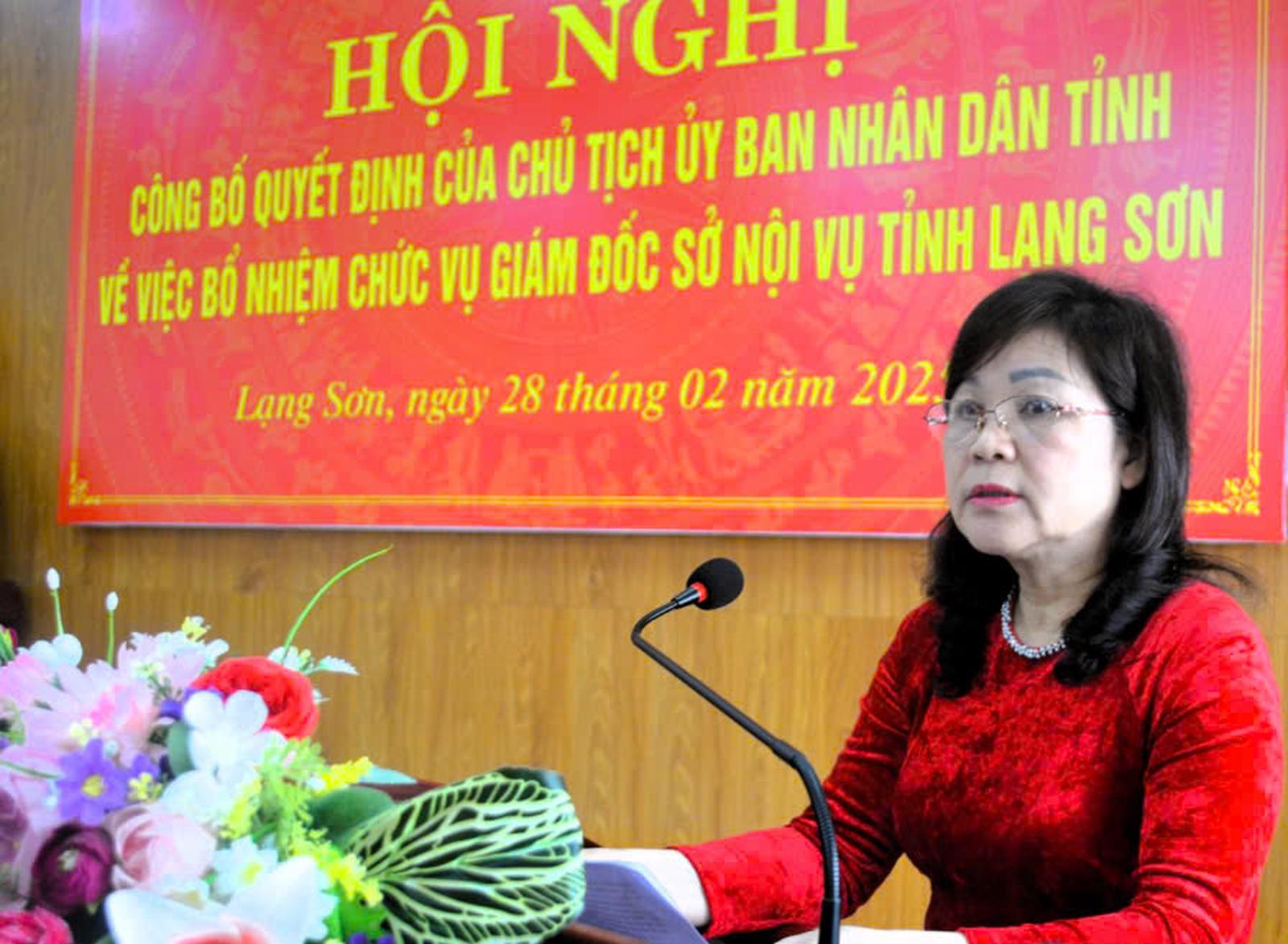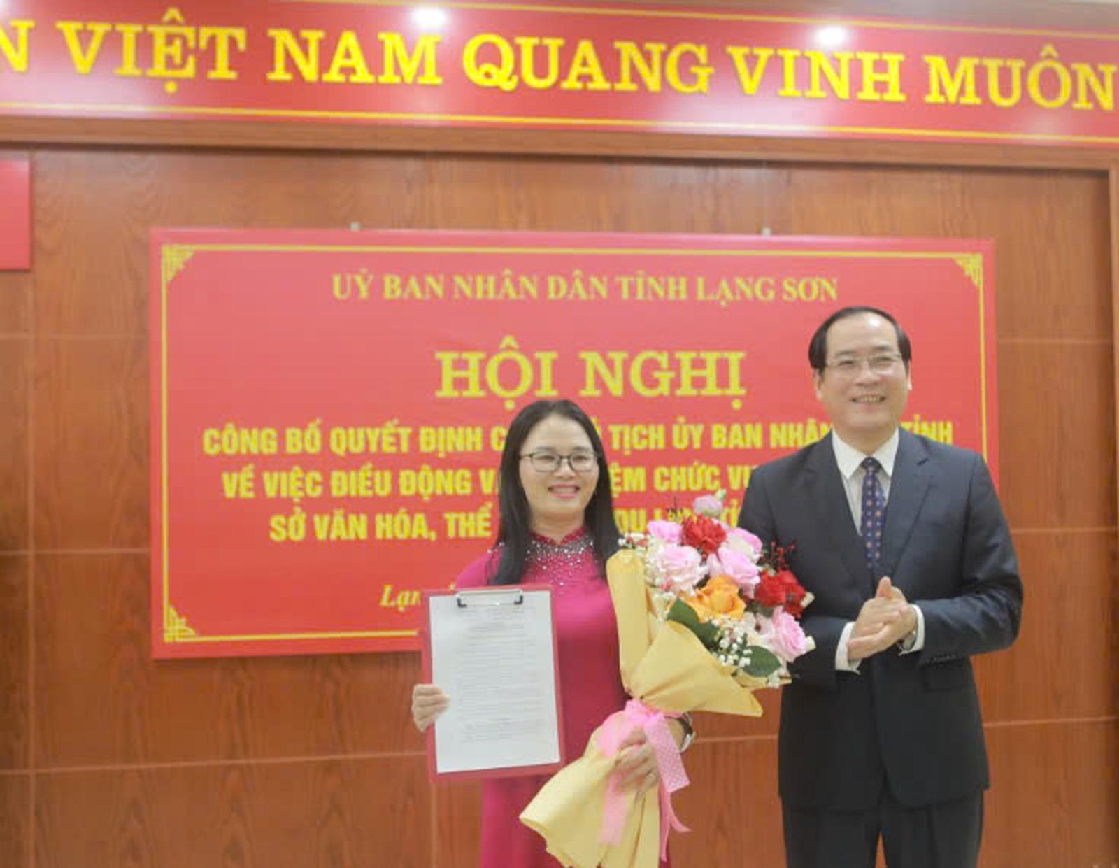 Lãnh đạo UBND tỉnh trao quyết định điều động và bổ nhiệm cho bà Lê Hải Yến, Phó Giám đốc Sở Văn hóa, Thể thao và Du lịch tỉnh Lạng Sơn. Ảnh: BLS